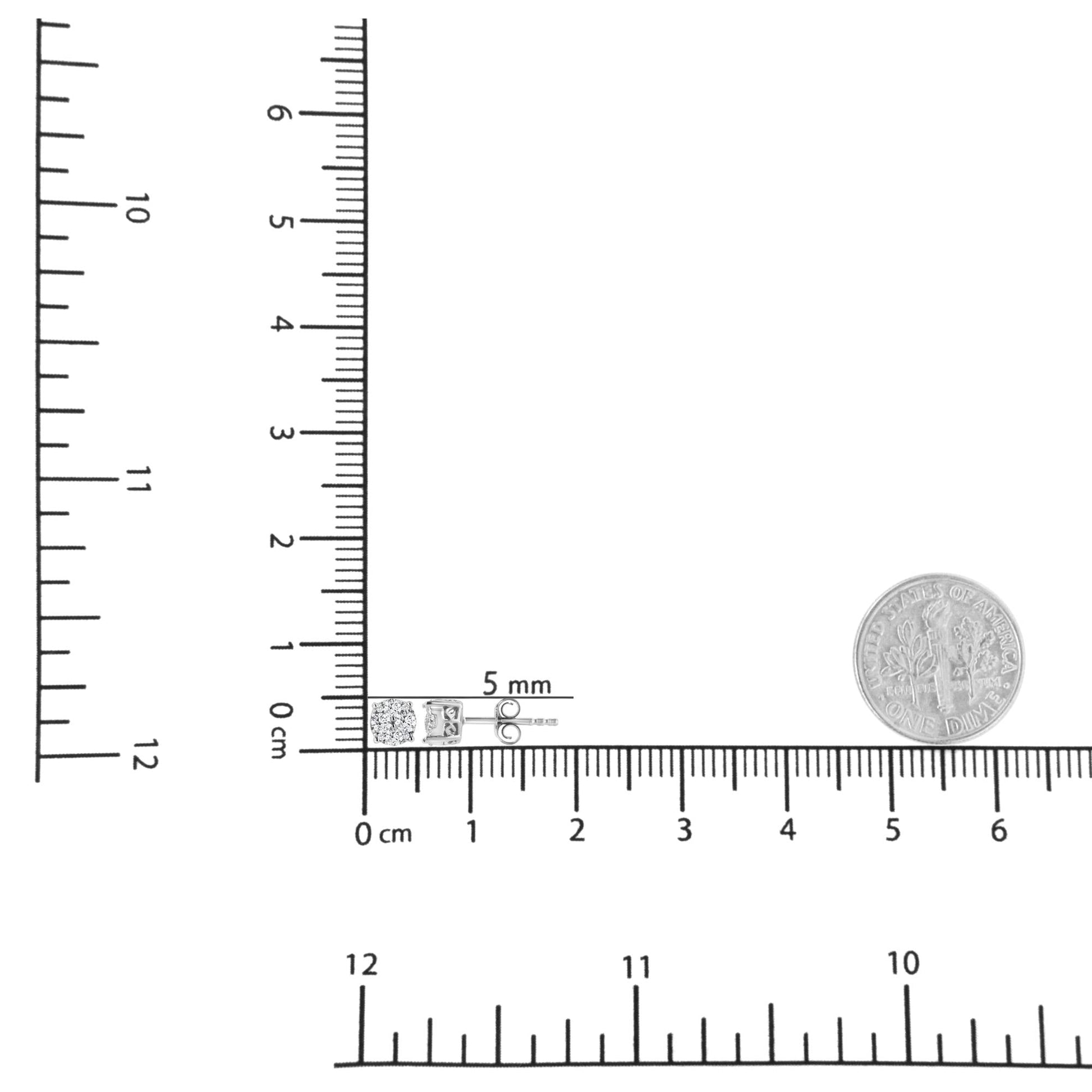 Elegant and timeless, these silver studs are set with stunning lab-grown diamonds that will shine bright on your ears. Varied sizes of round-cut diamonds make up the central design of this piece for a total carat weight of 1/2 cttw. The diamonds are set in genuine .925 sterling silver, plated with rhodium (a platinum-family metal) for a lifetime of tarnish-free wear. These earrings come with a screw-back mechanism for a secure and safe fit. Elevate your everyday wear or liven up any formal outfit with these beautiful earrings.