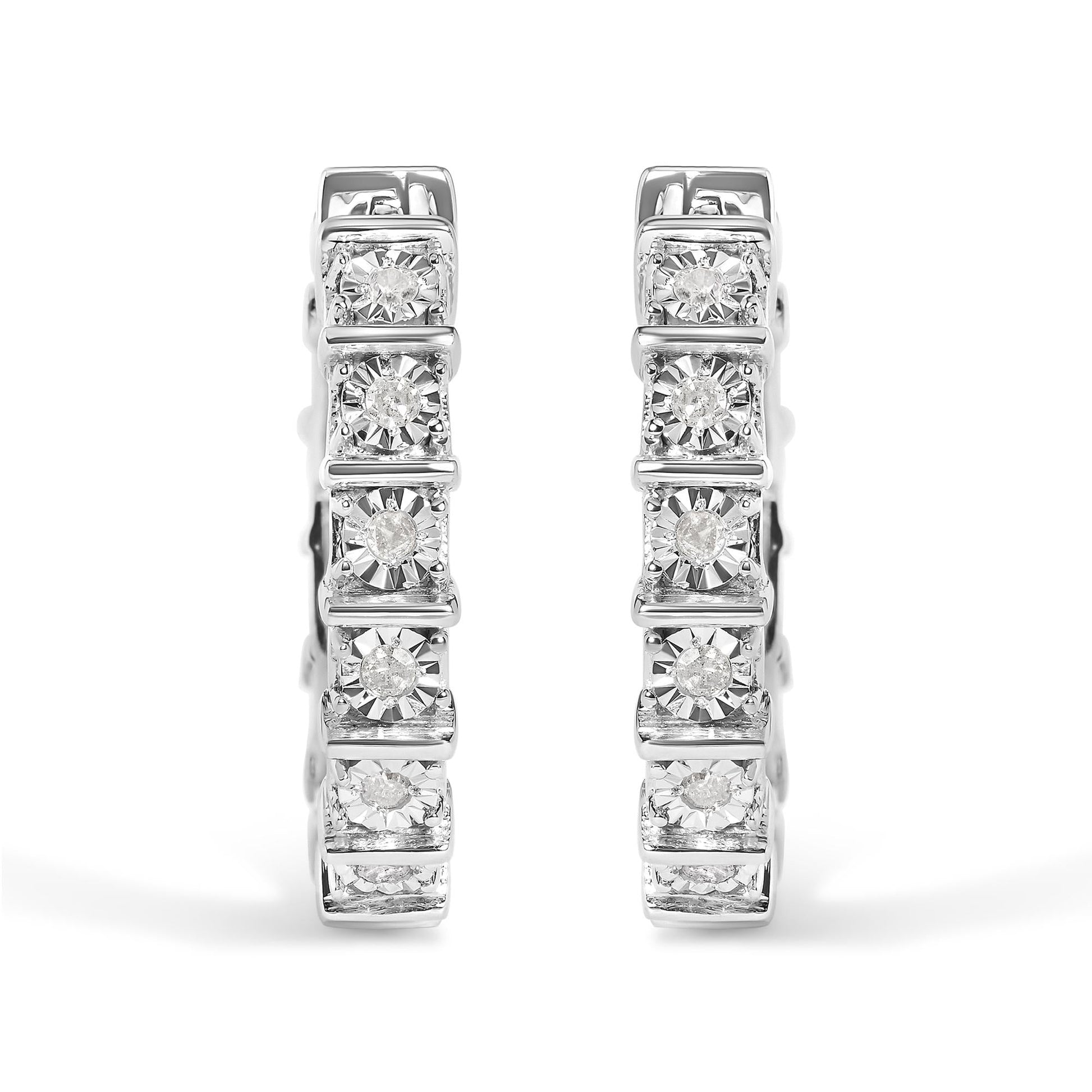 .925 Sterling Silver 1/2 Cttw Diamond Bar and Plate Eternity Hoop Earrings (I-J Color, I3 Clarity)