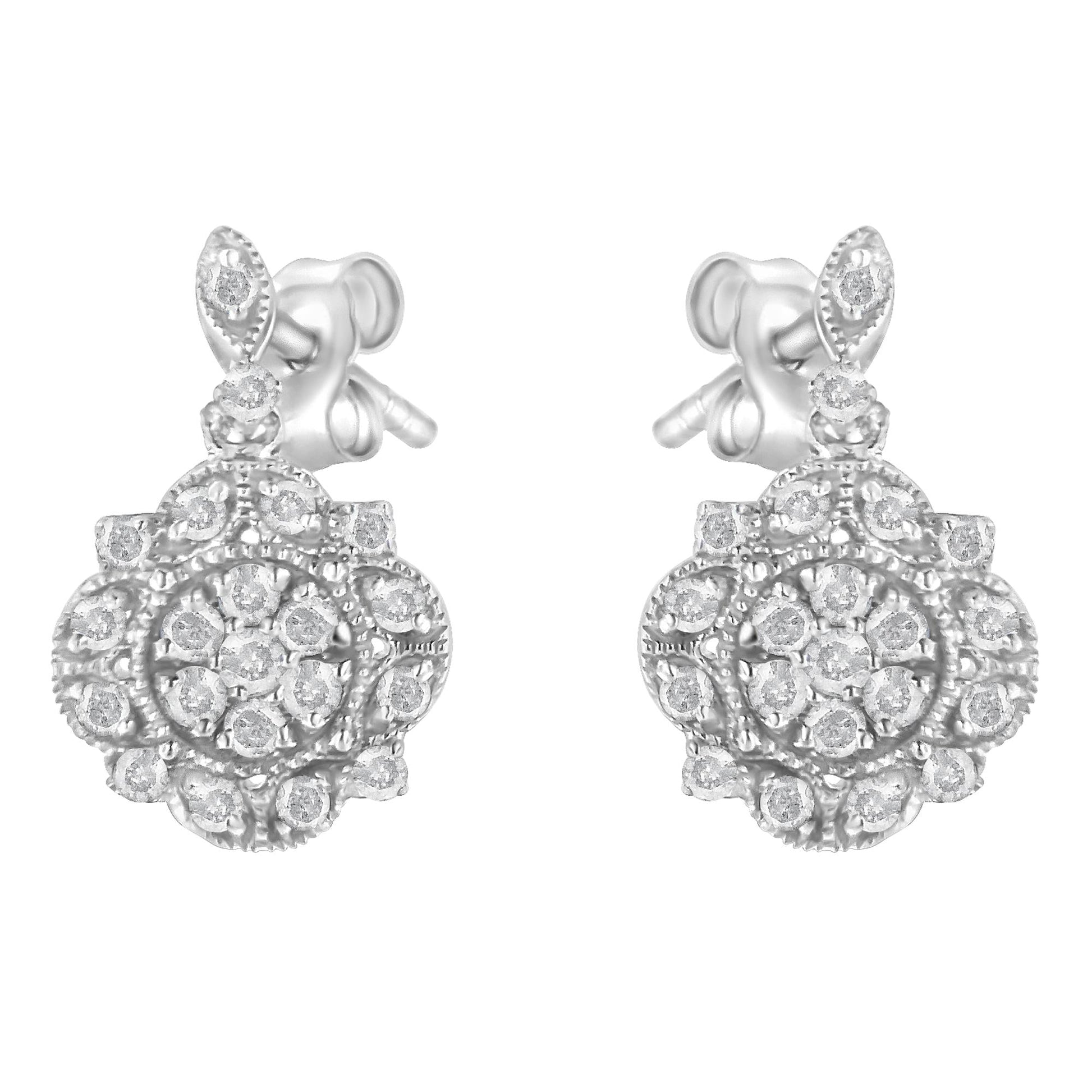 .925 Sterling Silver 1/2 Cttw Diamond Dangle Miligrain Earring (I-J Color, I2-I3 Clarity)