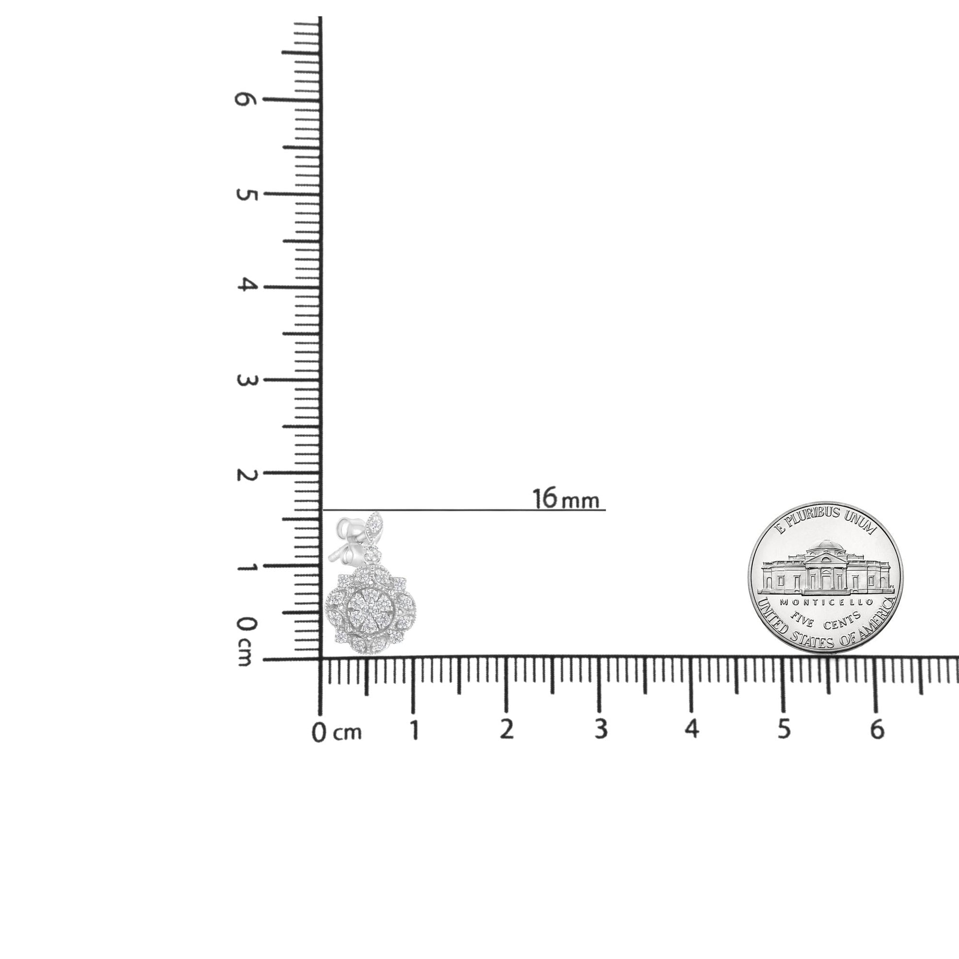 The 1/2ct TDW diamonds set on the .925 sterling silver metal in a prong design makes this a perfect piece for any function. This 4gm earring will match perfectly with all your beautiful outfits. The I2-I3 clarity diamonds makes you shine during your night outs. The small stud with the glorious dangle gives the earring a magical touch to make anyone wearing them feel special. It has 42 round cut diamonds that are arranged in an exquisite way to add that awe factor. The radiant brilliance of natural diamonds on the white silver metal is something that has to be worn and enjoyed. So, gift this piece to that special woman in your life and let her glory be seen and appreciated.