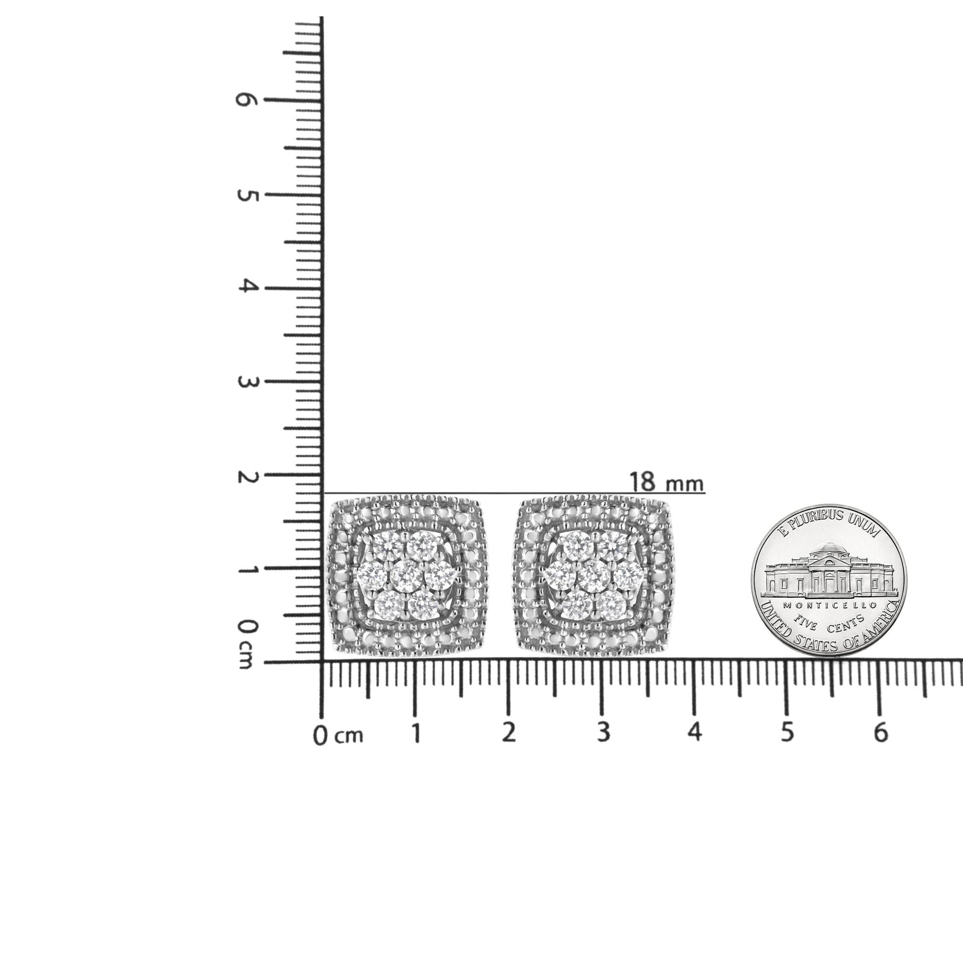 .925 Sterling Silver 1/2 Cttw Diamond Miligrain Square Shape Stud Earrings (I-J Color, I2-I3 Clarity)