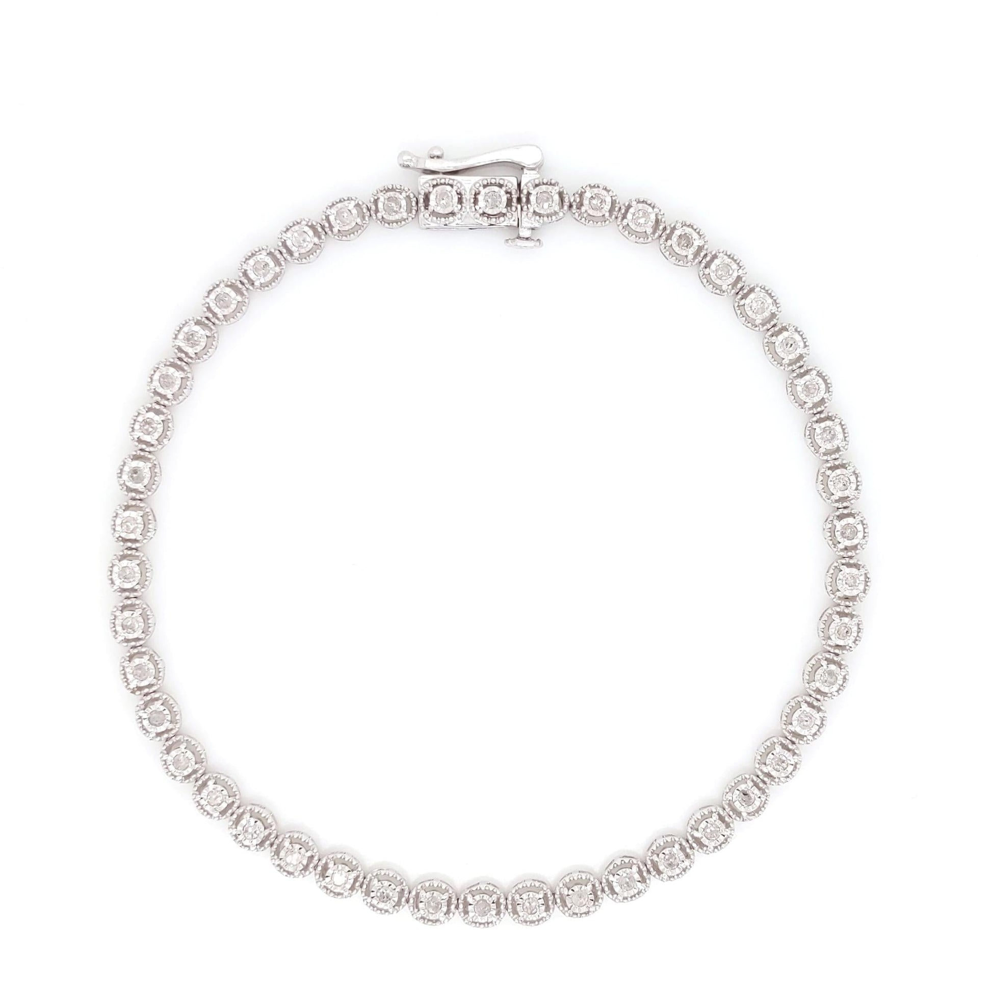 .925 Sterling Silver 1/2 Cttw Miracle-set Round-Cut Diamond Bezel Link Bracelet (I-J Color, I3 Clarity) - 7.25"