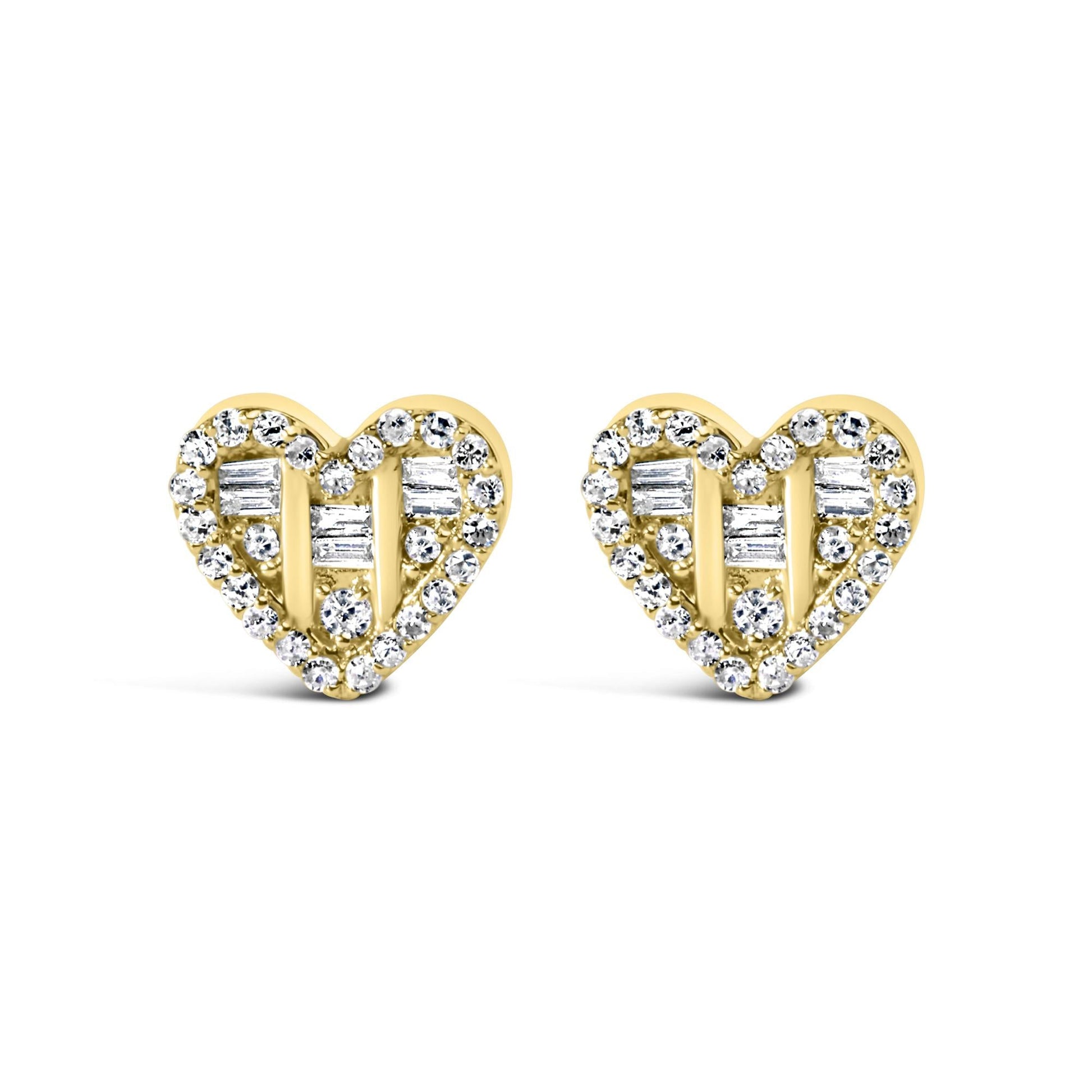 .925 Sterling Silver 1/2 Cttw Round and Baguette Diamond Composite Heart Shaped Stud Earring (I-J Color, SI2-I1 Clarity)