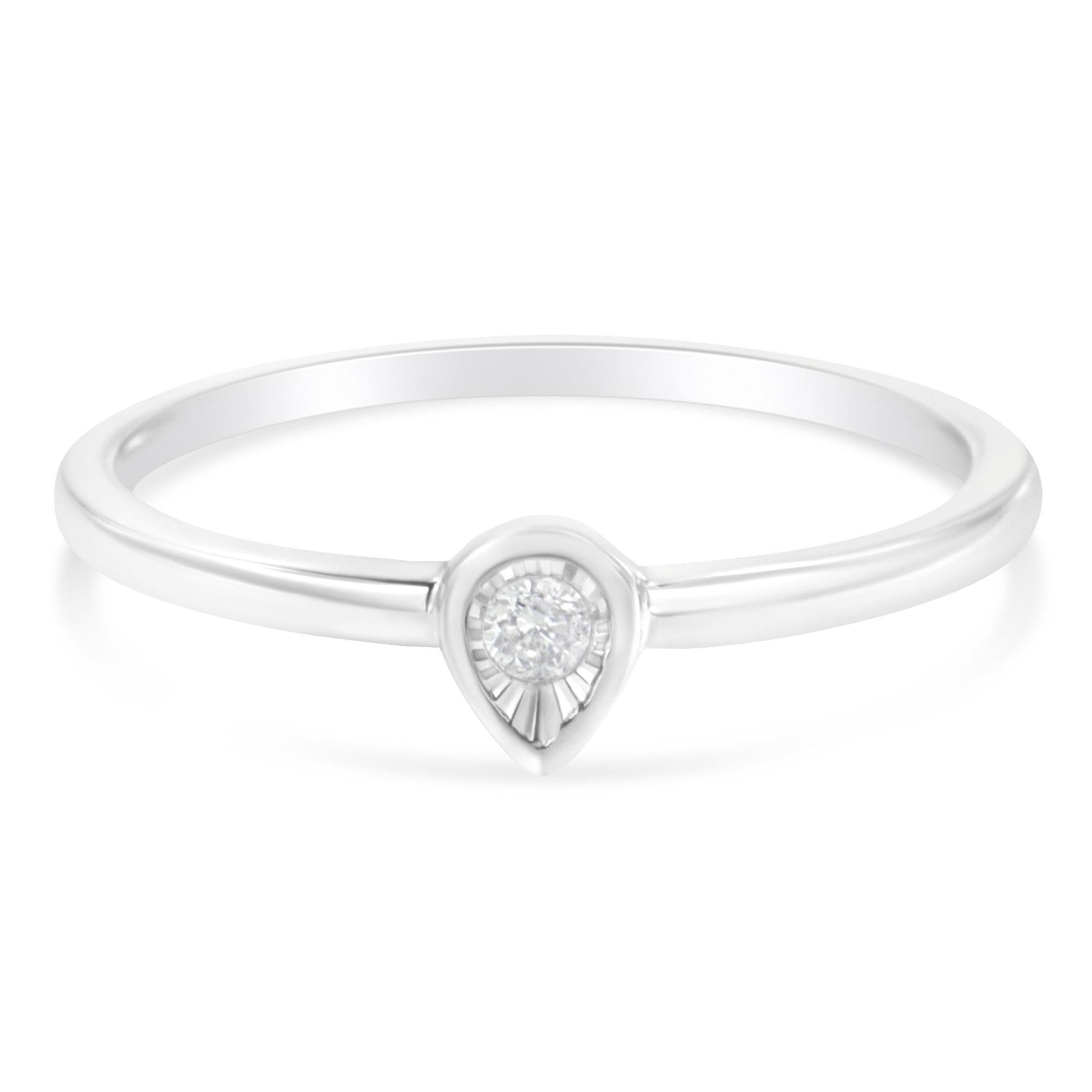 .925 Sterling Silver 1/20 Carat Diamond Teardrop Pear-Shaped Miracle Set Petite Fashion Promise Ring (J-K Color, I1-I2 Clarity)