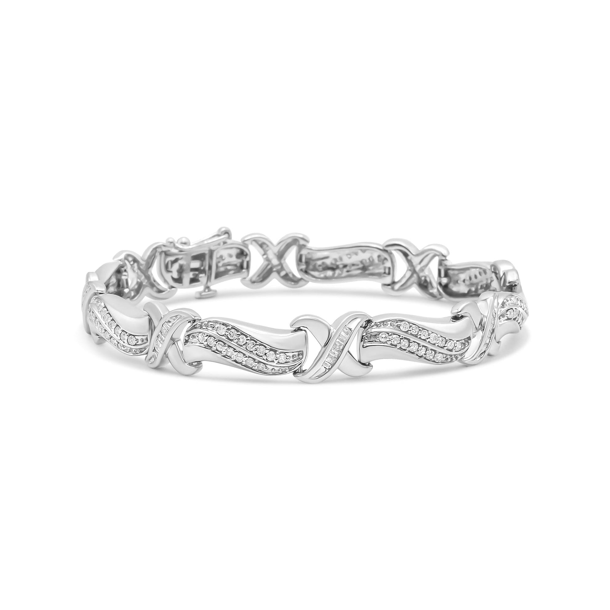 .925 Sterling Silver 1 3/4 Cttw Diamond Wave and X Link Tennis Bracelet (I-J Color, I3 Clarity) - 7"