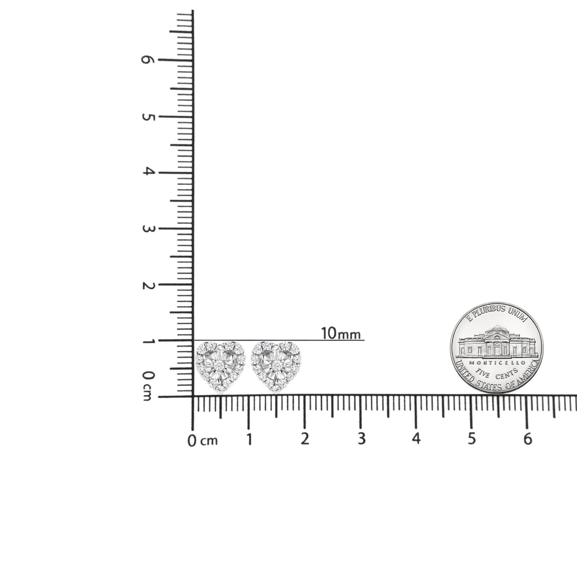 .925 Sterling Silver 1/3 Cttw Miracle Set Round-Cut Diamond Heart Stud Earring (I-J Color, I2-I3 Clarity)