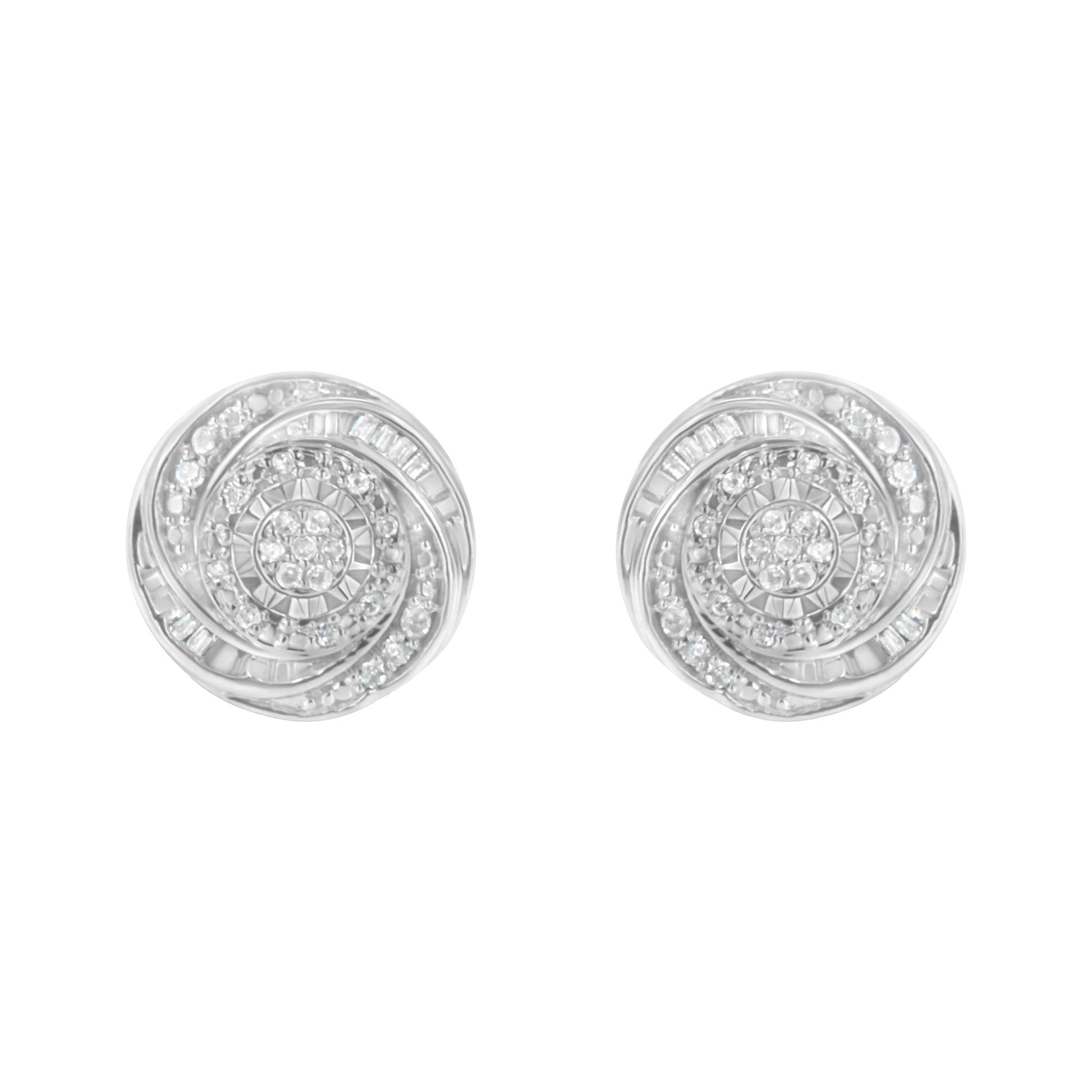 .925 Sterling Silver 1/4 Cttw Baguette and Round Diamond Swirl Love Knot Stud Earrings (I-J Color, I3 Clarity)