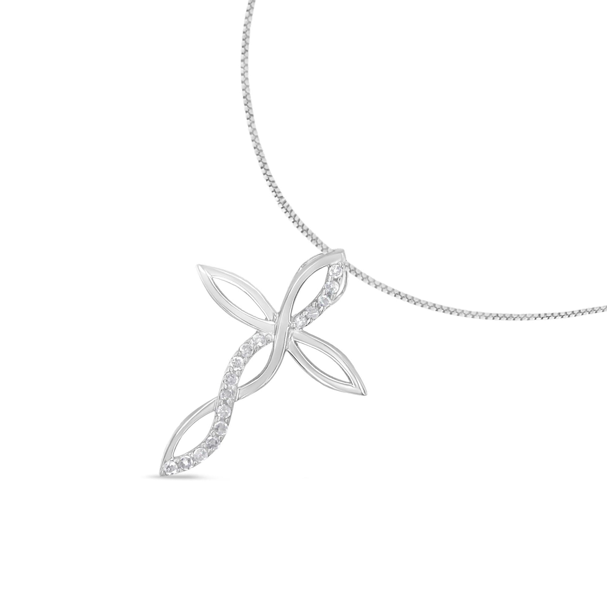 .925 Sterling Silver 1/4 cttw Diamond Cross Pendant Necklace (I-J, I3)