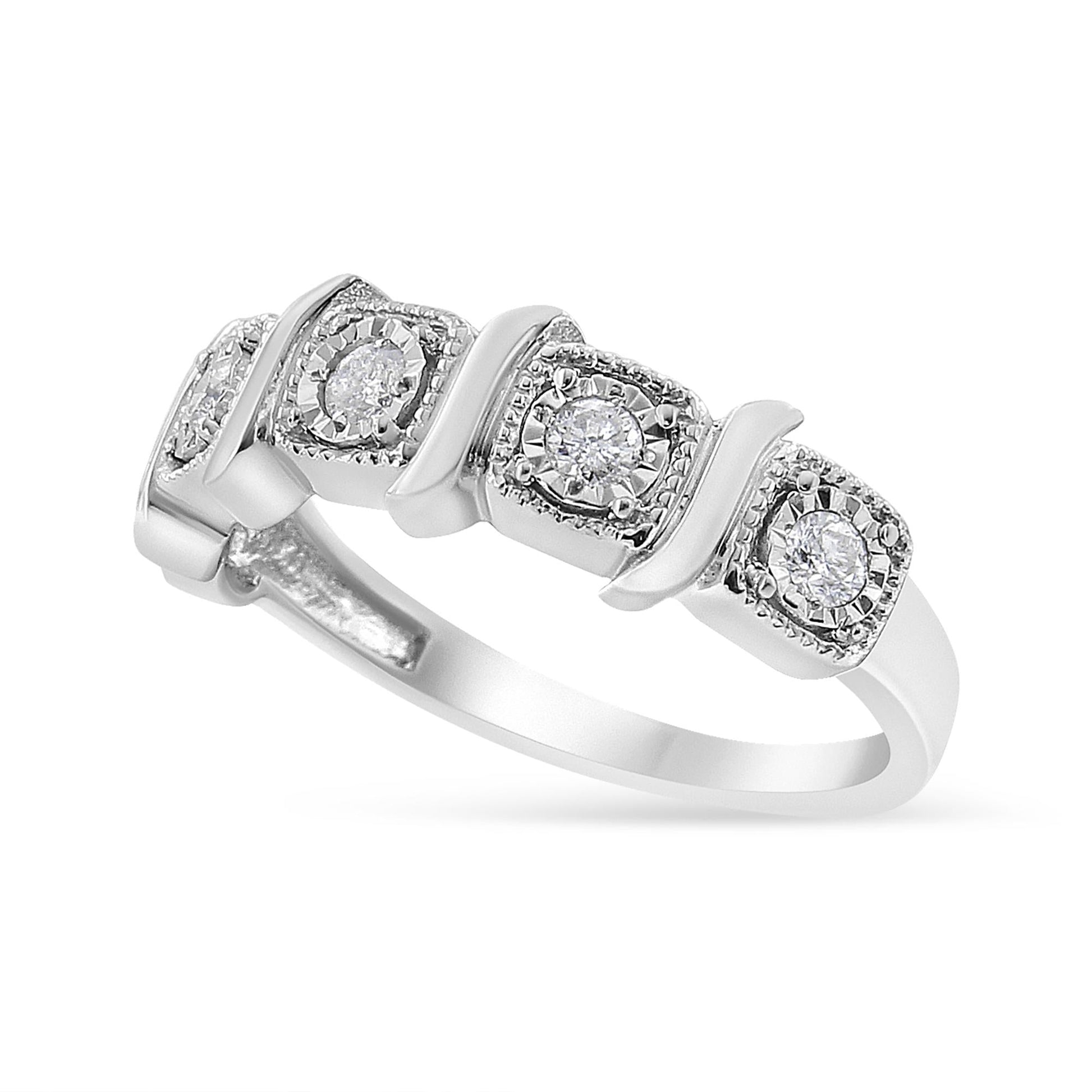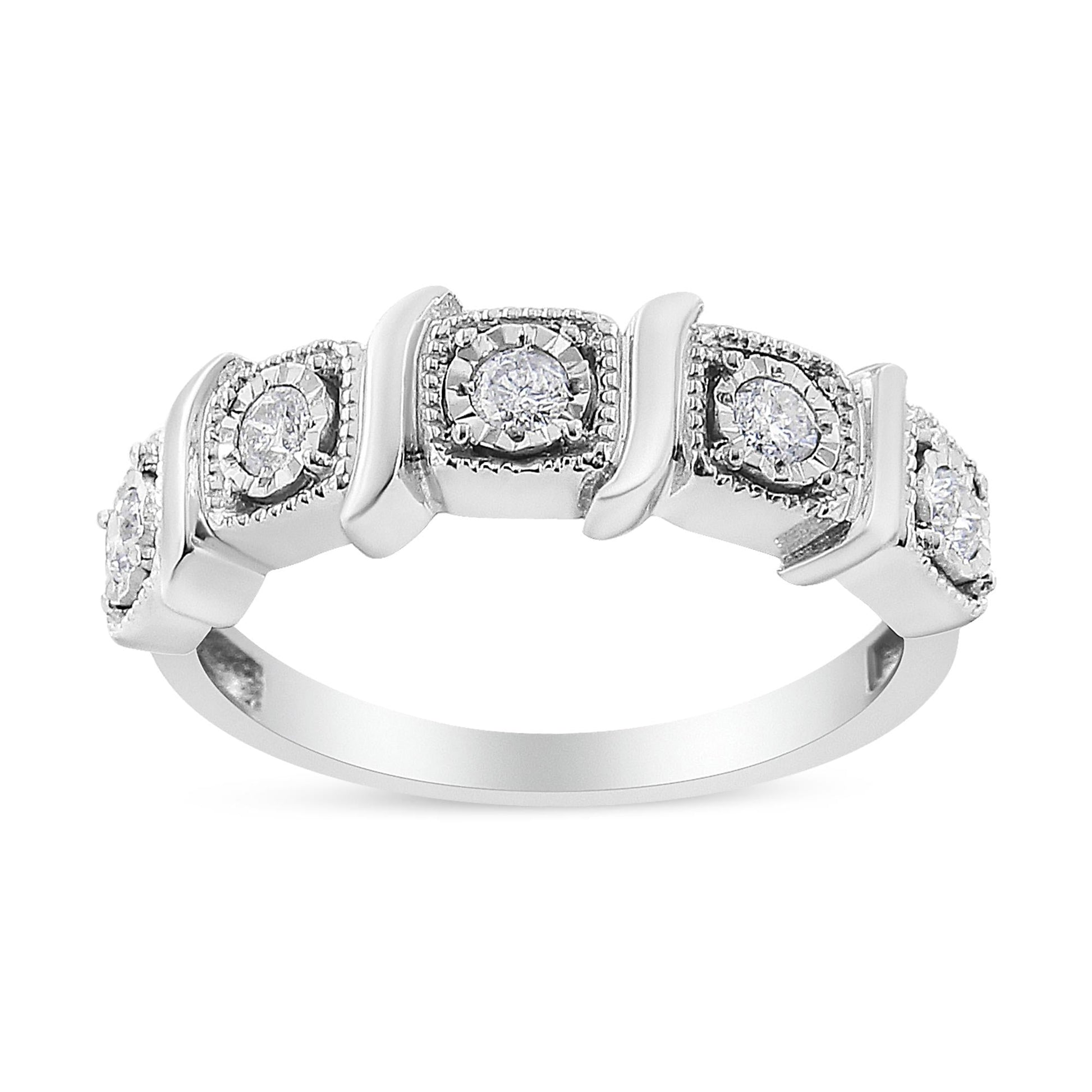 .925 Sterling Silver 1/4 Cttw Miracle Set Diamond 5-Stone Swirl Band Ring (I-J Color, I1-I2 Clarity)