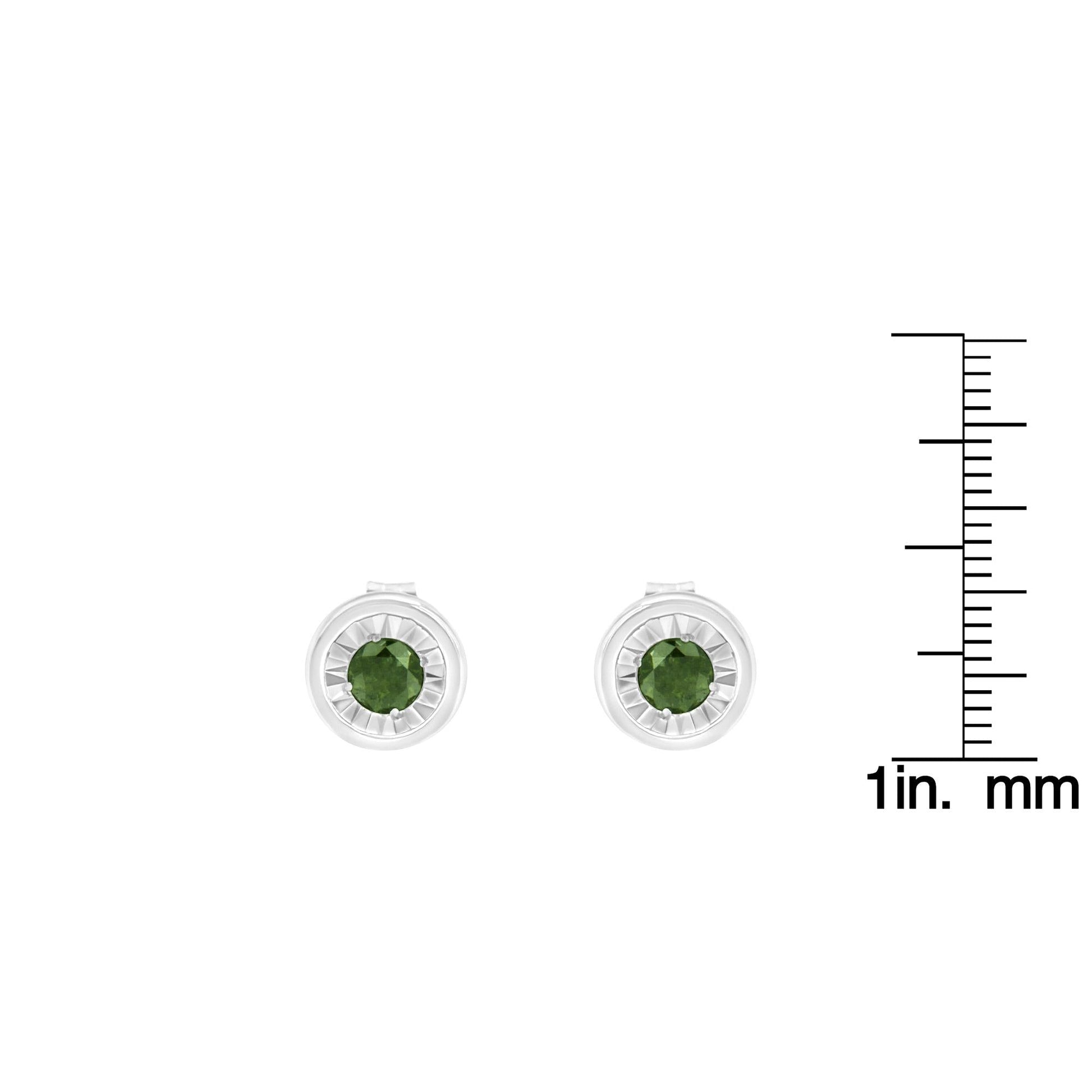 .925 Sterling Silver 1/4 Cttw Round Brilliant-Cut Green Diamond Miracle-Set Stud Earrings (Fancy Color-Enhanced, I1-I2 Clarity)