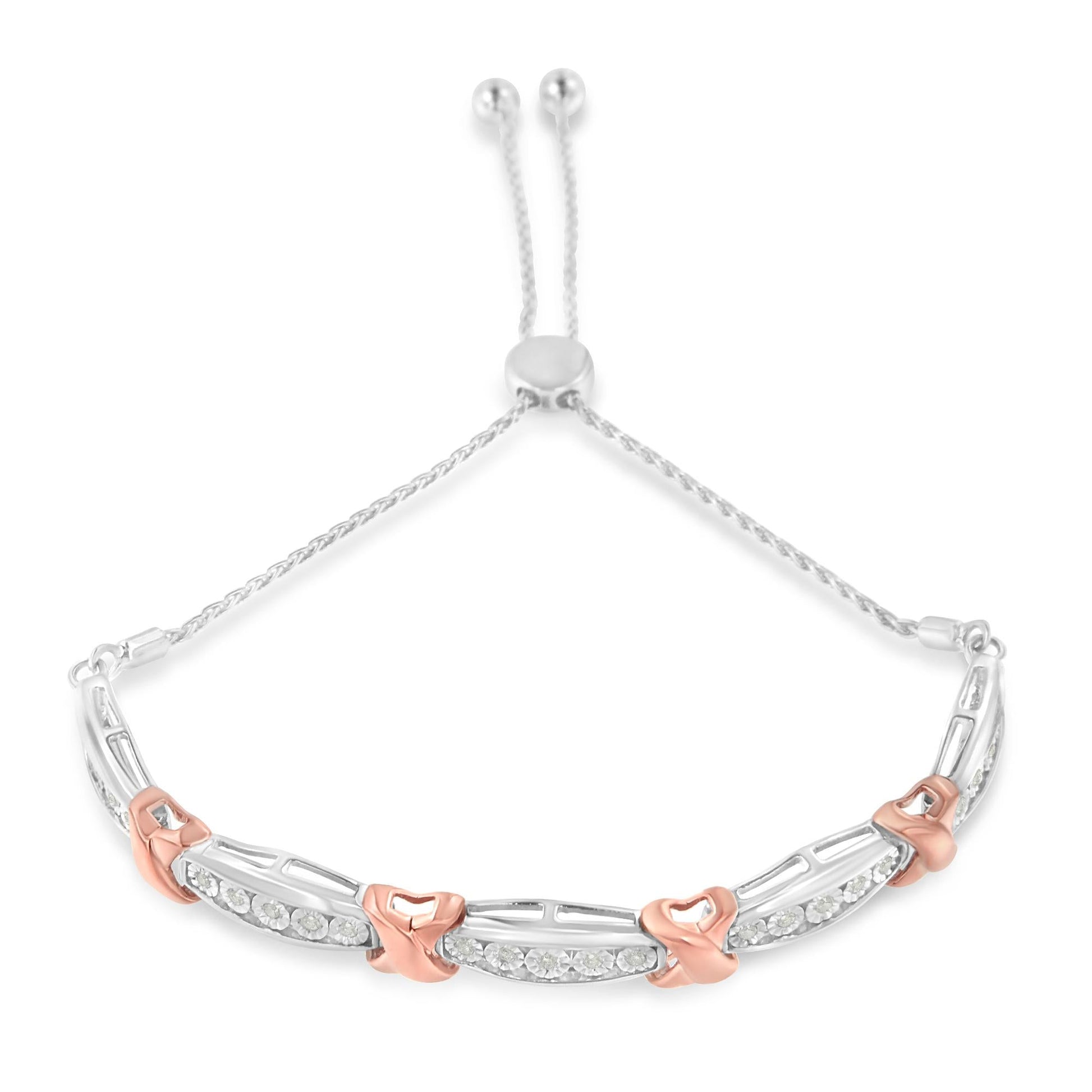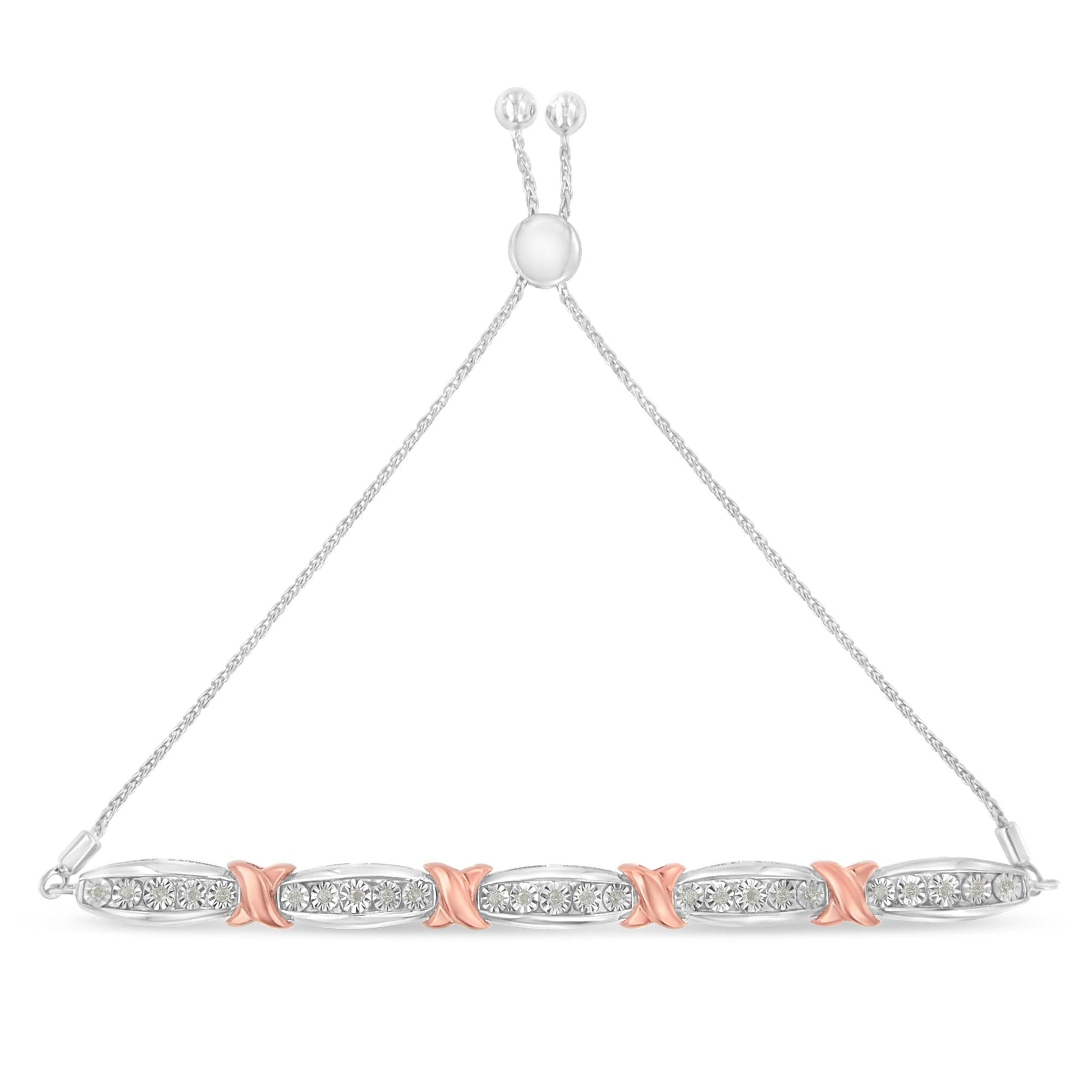 .925 Sterling Silver 1/4 Cttw Round-Cut Diamond X & Tapered Bar Miracle-Set Bolo Bracelet (I-J Color, I3 Clarity) - Two Tone Rose Gold & Silver