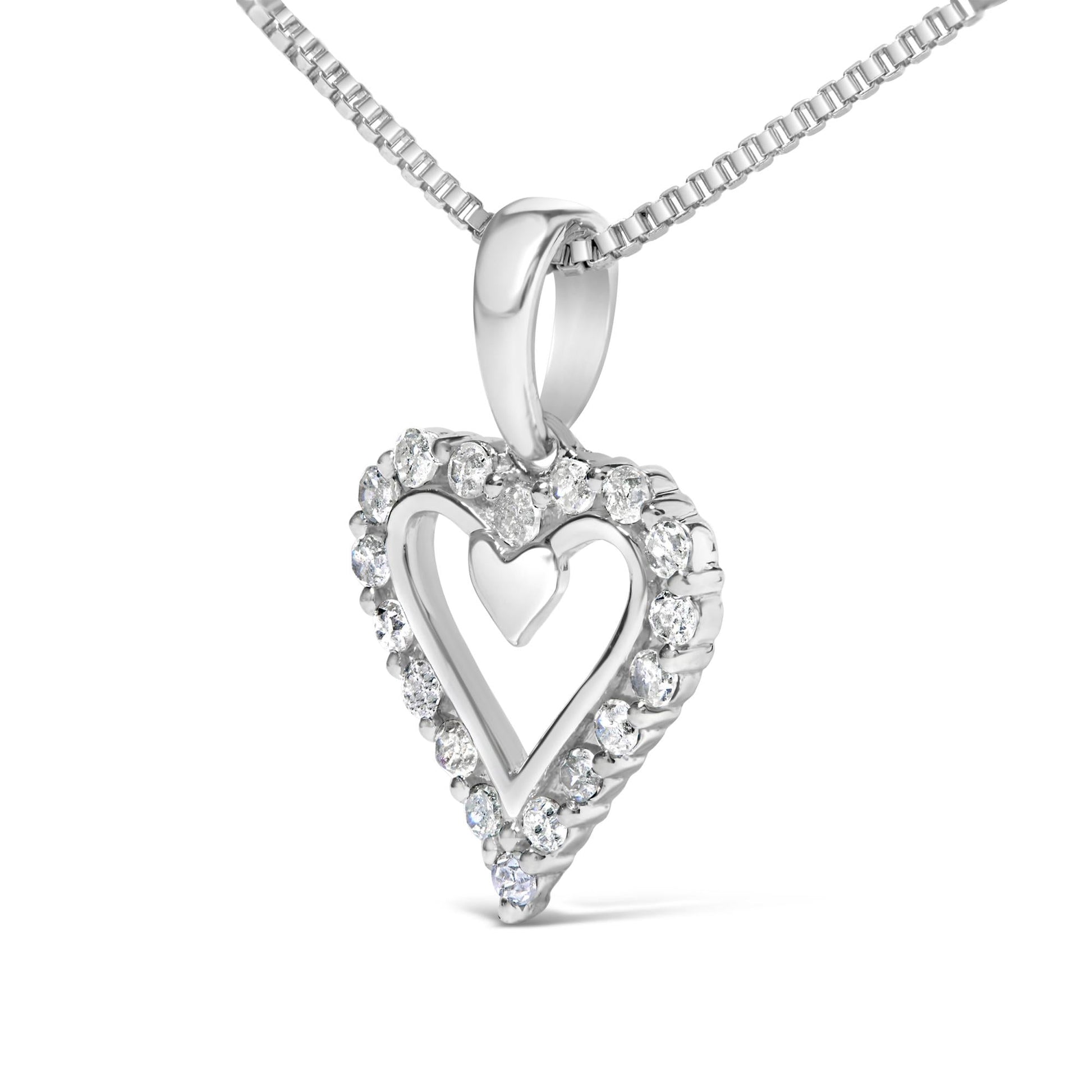 .925 Sterling Silver 1/5 Cttw Diamond Open Heart Pendant Necklace (I-J Color, I2-I3 Clarity) - 18" Inches