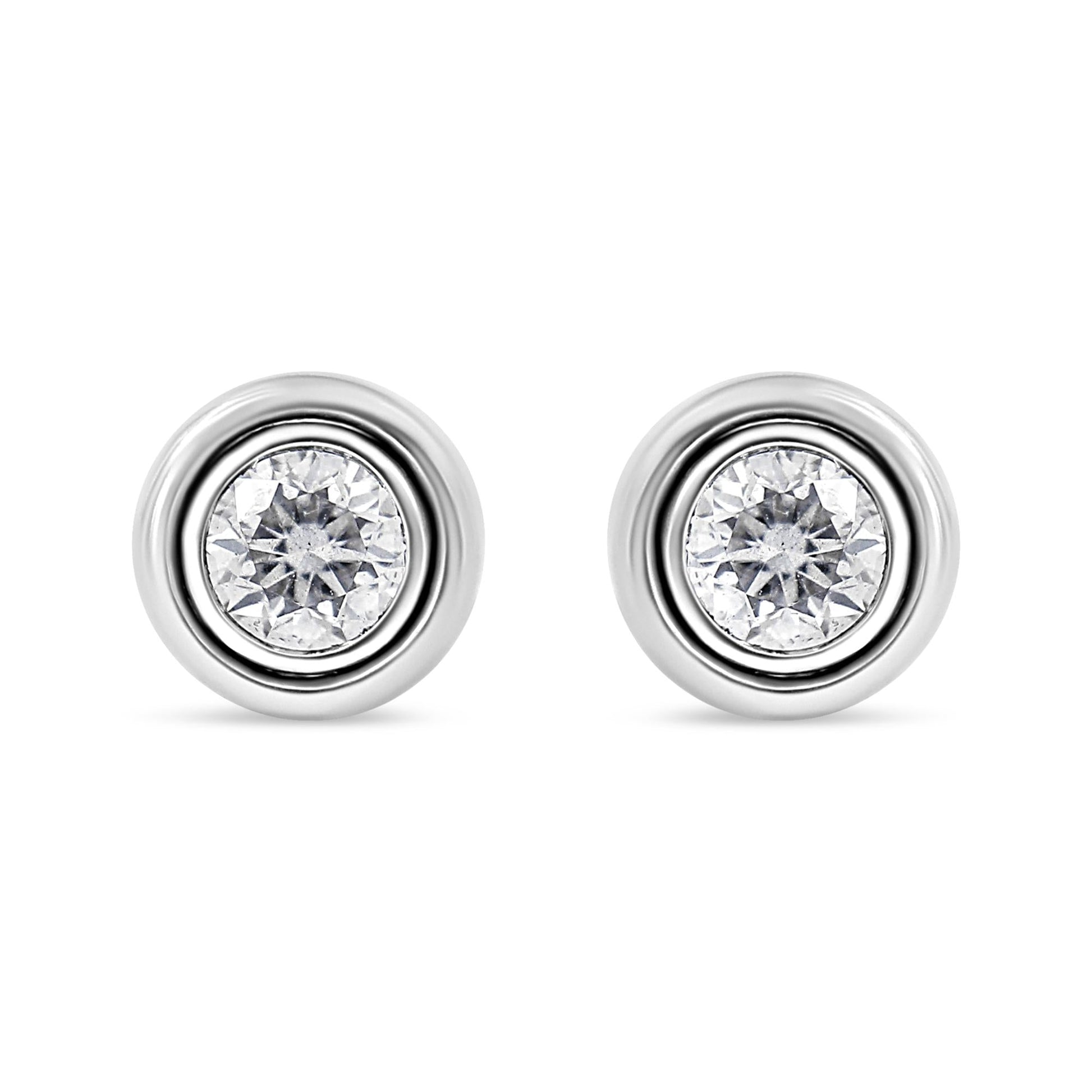 .925 Sterling Silver 1/5 Cttw Lab-Grown Round Brilliant-Cut Diamond Modern Bezel-Set Stud Earring (F-G Color, VS2-SI1 Clarity)