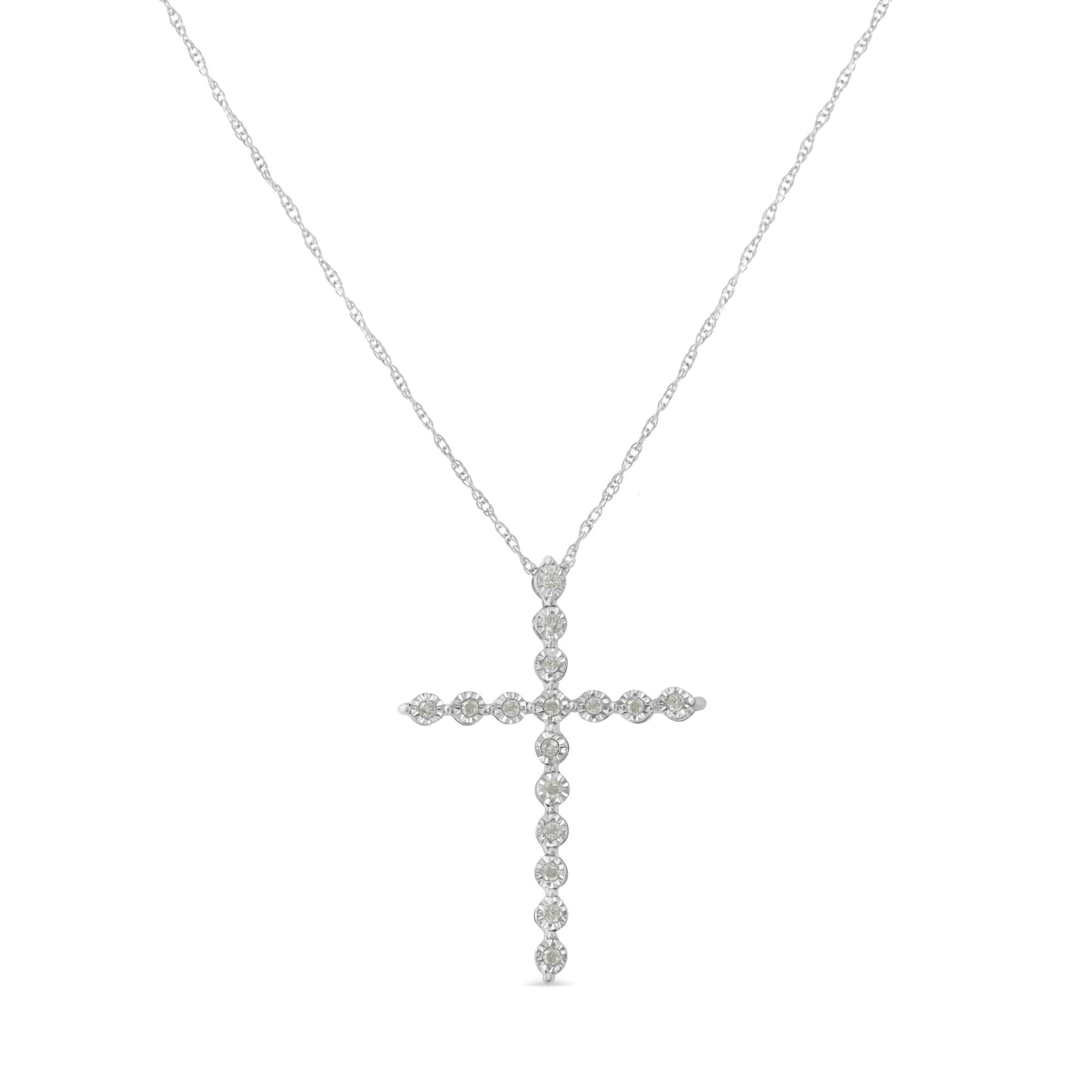 .925 Sterling Silver 1/6 Cttw Brilliant-Cut Diamond Miracle-Set Shared Prong Cross 18" Pendant Necklace (I-J Color, I2-I3 Clarity)