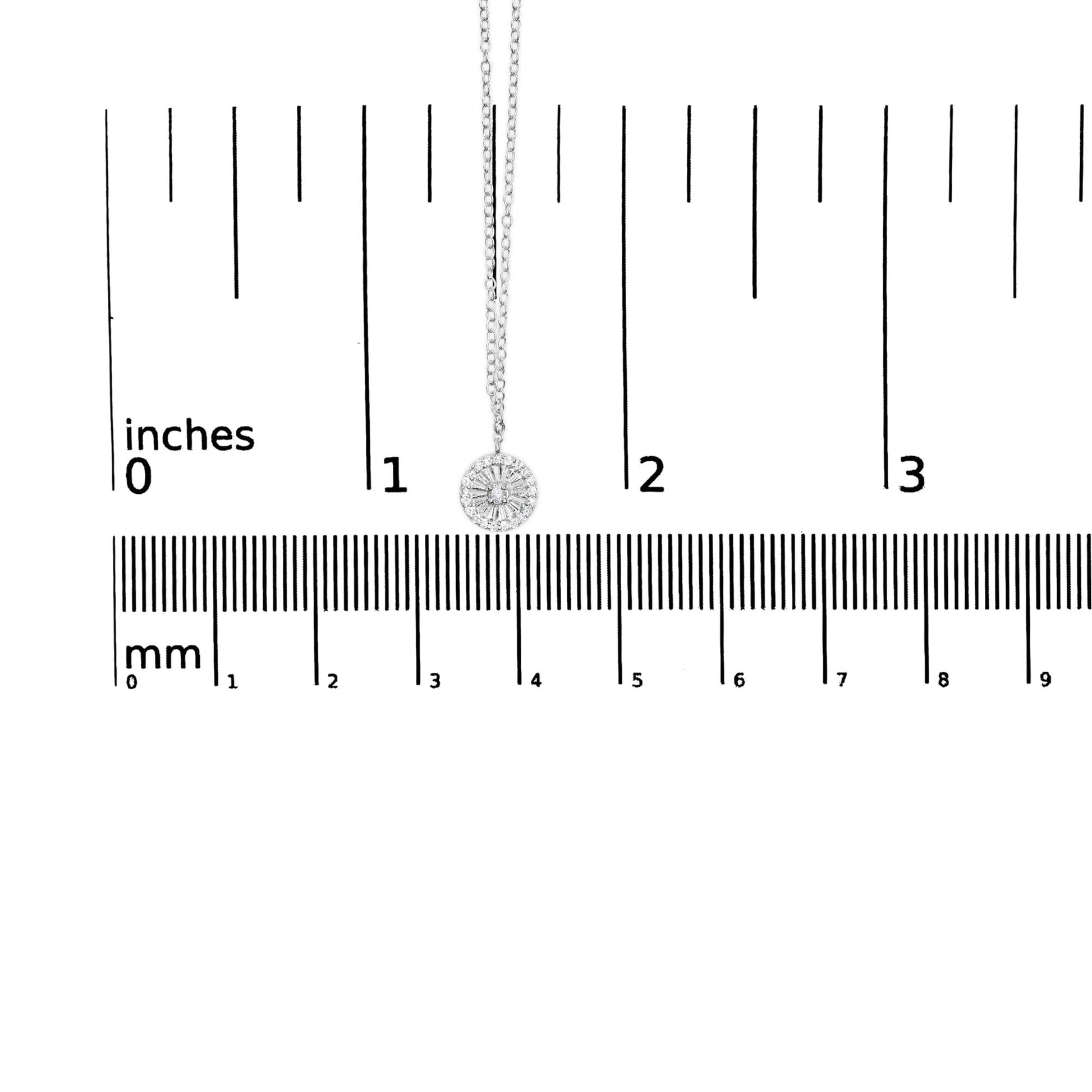 Embrace the brilliance of simplicity and elegance with this exquisitely crafted pendant necklace, where .925 sterling silver embraces a constellation of natural, earth-mined diamonds. At the heart of this alluring piece lies a singular, captivating diamond, whose purity and clarity are brilliantly showcased by the surrounding halo of meticulously set stones. This wheel and spoke design not only symbolize strength and motion but also enhances its luminous allure through grooved metalwork that catches every flicker of light. Rhodium plating adds a final touch of gleam and ensures lasting wearability, while the secure 18-inch cable chain promises the pendant sits perfectly at the clasp of beauty and visibility.