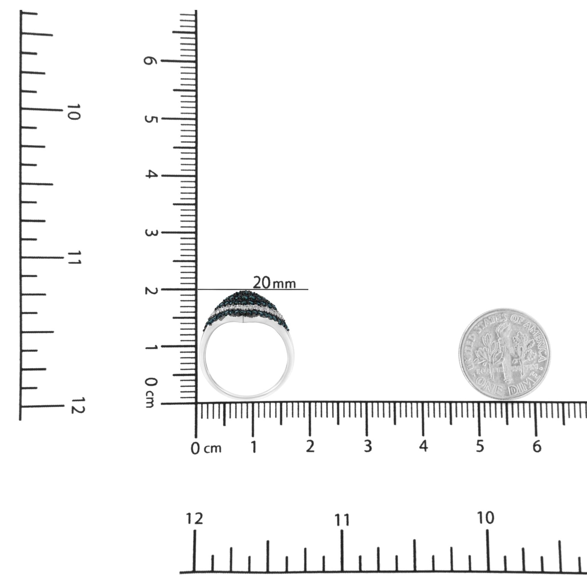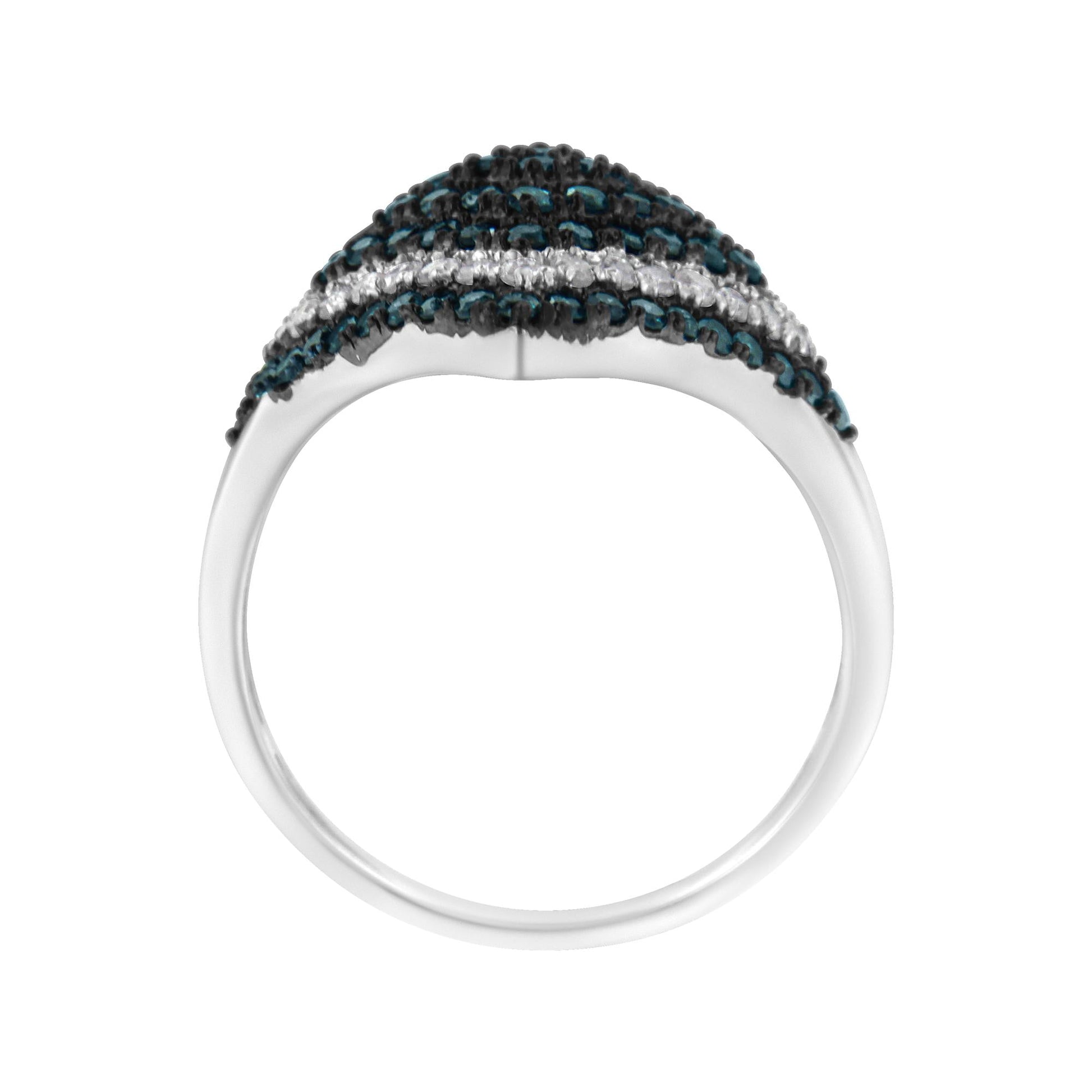 .925 Sterling Silver 1 cttw White and Treated Blue Diamond Rhombus Cocktail Ring (Blue, I3)