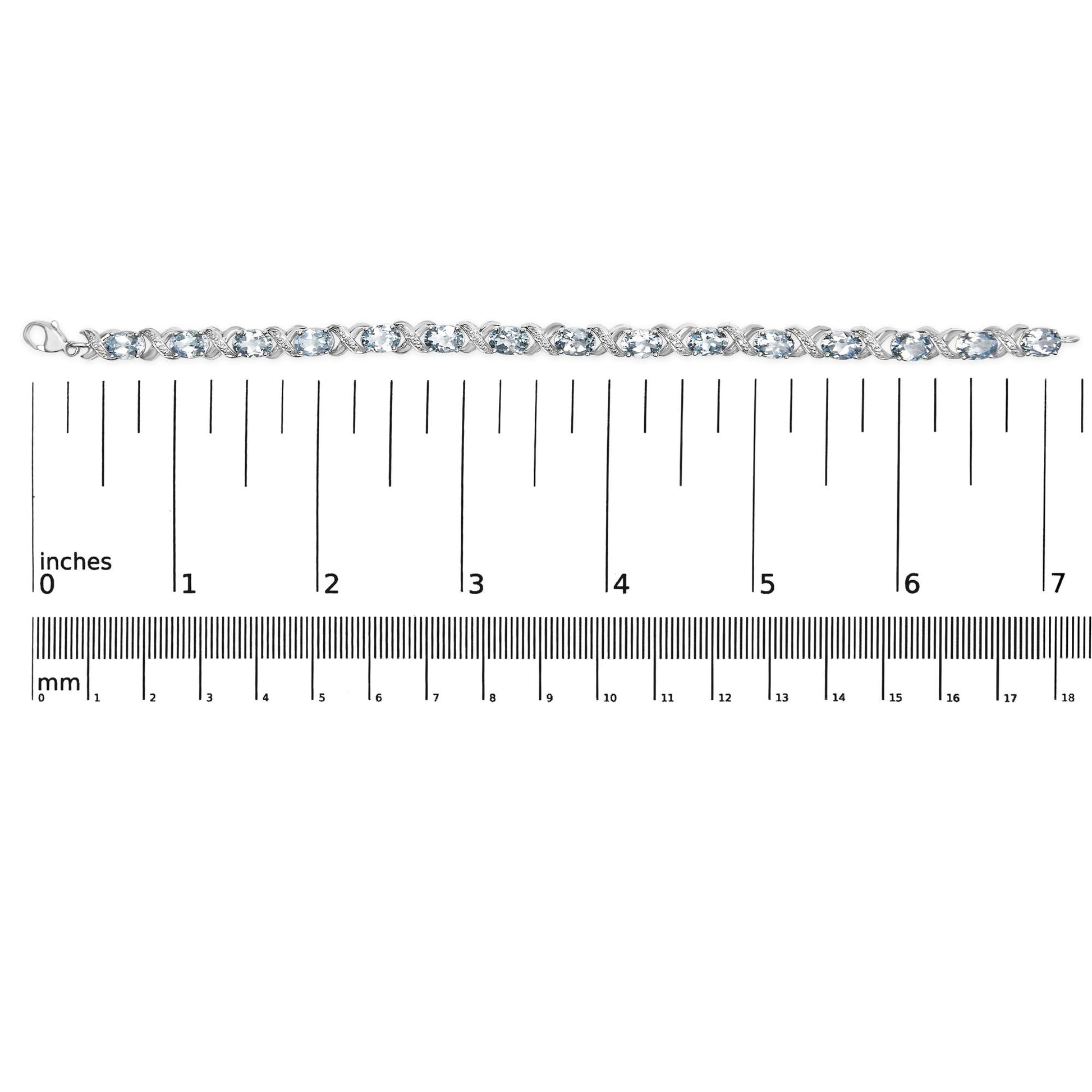 .925 Sterling Silver 16.0 Cttw Oval Blue Topaz and Diamond Accent Tennis X Link Bracelet (I-J Color, I1-I2 Clarity) - Size 7" Inch