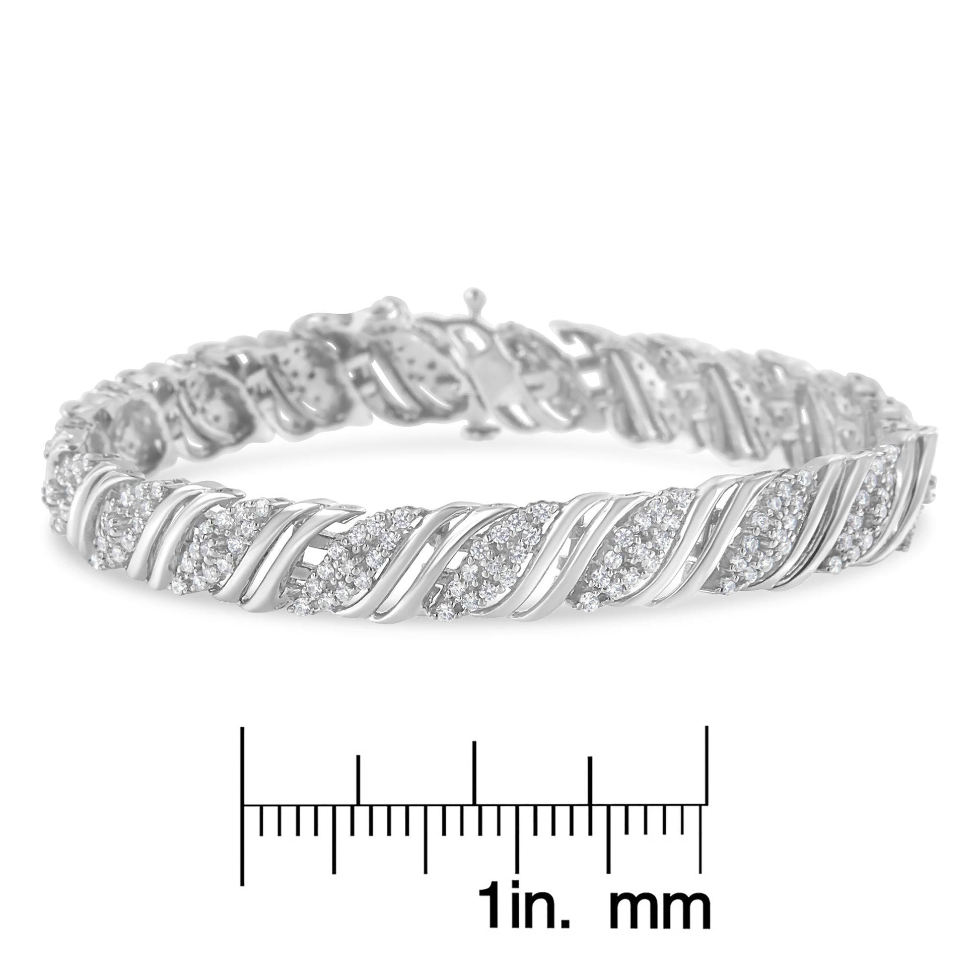 .925 Sterling Silver 2.0 cttw Diamond Double Wrap S Curve Link Bracelet (I-J Color, I3 Clarity) -7.25"