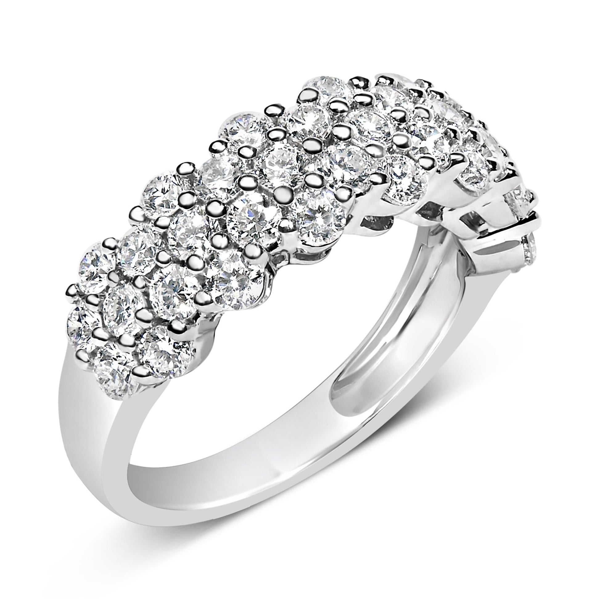 Discover the enchanting allure of this rhodium-plated .925 sterling silver ring, a masterpiece designed to sparkle with a modern twist. Lab-grown diamonds, totaling 2.0 carats, are meticulously prong-set in a seemingly random pattern, mimicking a starlit sky scattered across multiple rows. Each diamond, crafted with precision in the lab, offers not only a sustainable brilliance but also an ethical luxury, seamlessly aligning with contemporary values. The luxurious finish and the playful yet elegant dispersion of light make this ring a perfect statement of sophistication and environmental consciousness. Ideal for those who cherish unique design and sustainable beauty, it's a piece that doesn't just adorn your finger tells a story.