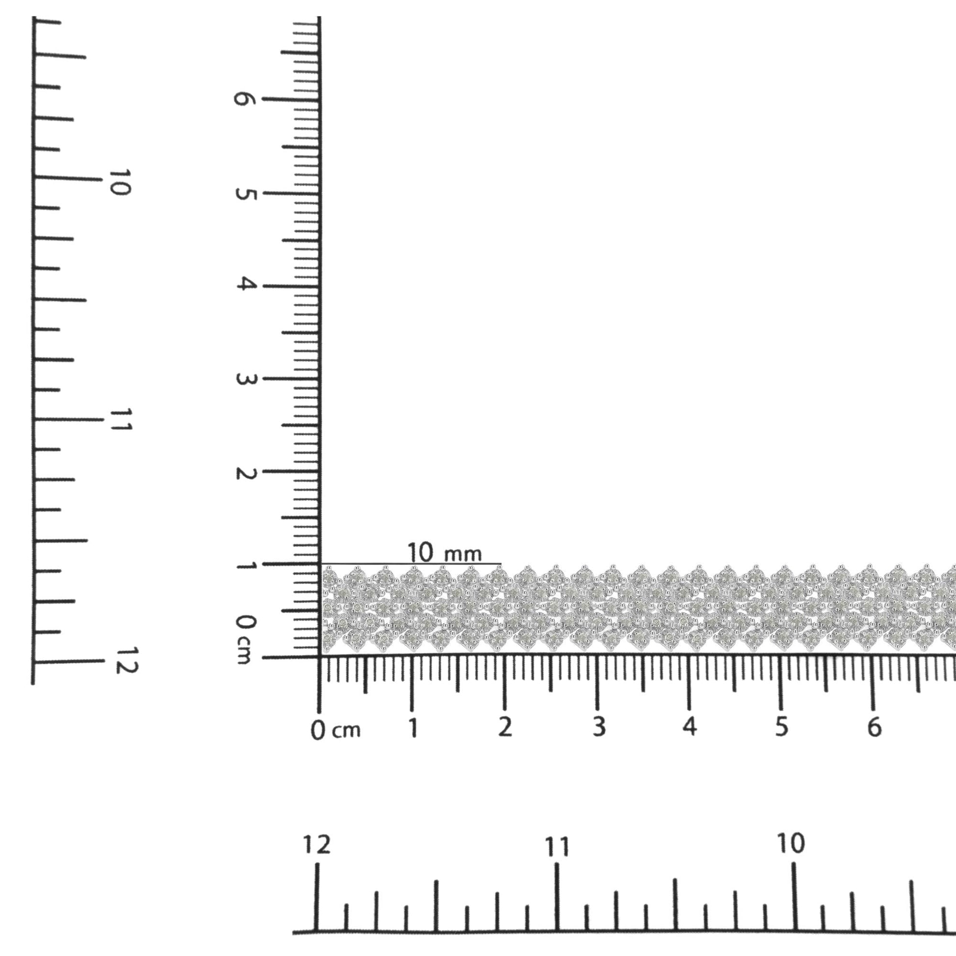 This breathtaking sterling silver tennis bracelet features 3 ct of beautiful, natural diamonds. Giving off an old glamour vibe, this bracelet has a cascading multi-row design embellished with rose-cut, promo quality diamonds. This is the perfect accessory for any formal night out. Promo quality diamonds are on the lowest of diamond color and quality scale. Round-cut, promo quality diamonds are milky and cloudy in nature. They have asymmetrical ball shape and are filled with inclusions.