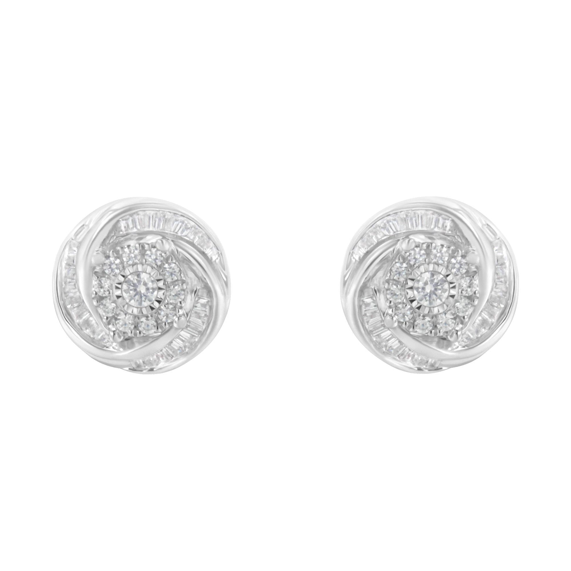 .925 Sterling Silver 3/4 Cttw Round and Baguette-Cut Diamond Love Knot Stud Earring (I-J Color, I2-I3 Clarity)