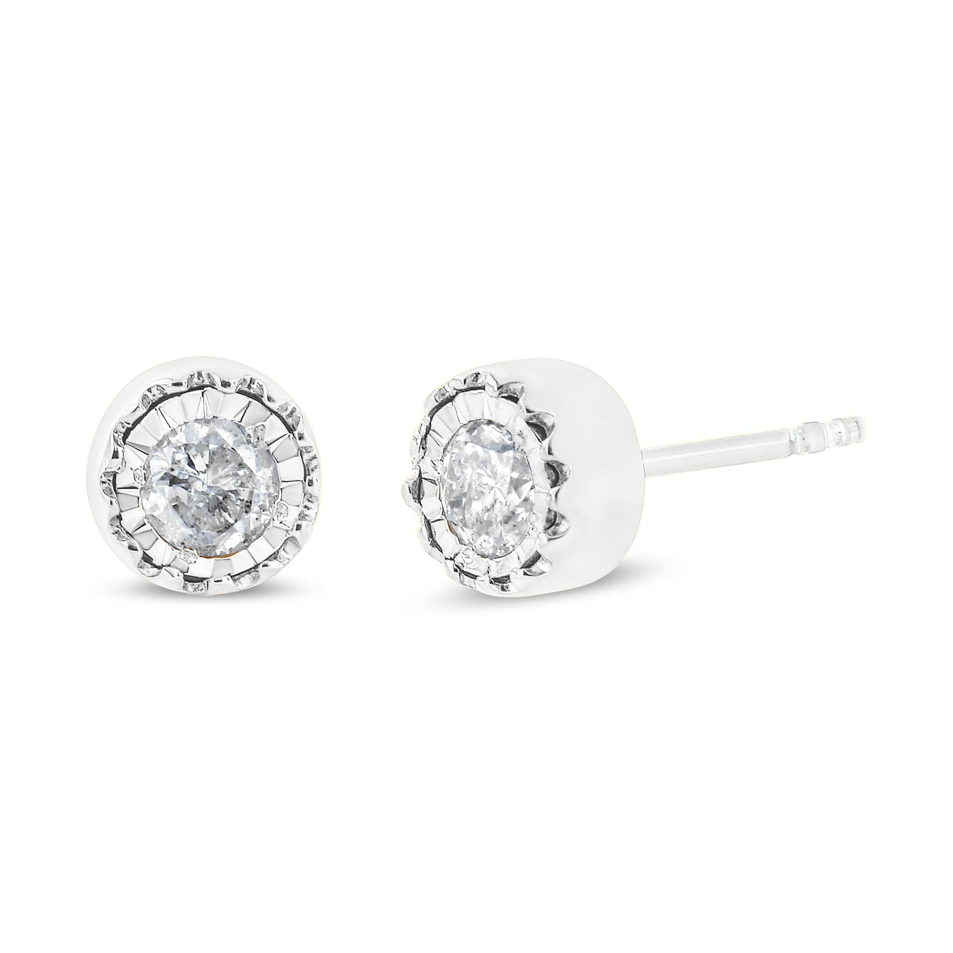 .925 Sterling Silver 3/8 Cttw Solitaire Diamond Miracle Set Stud Earrings (J-K Color, I3 Clarity)