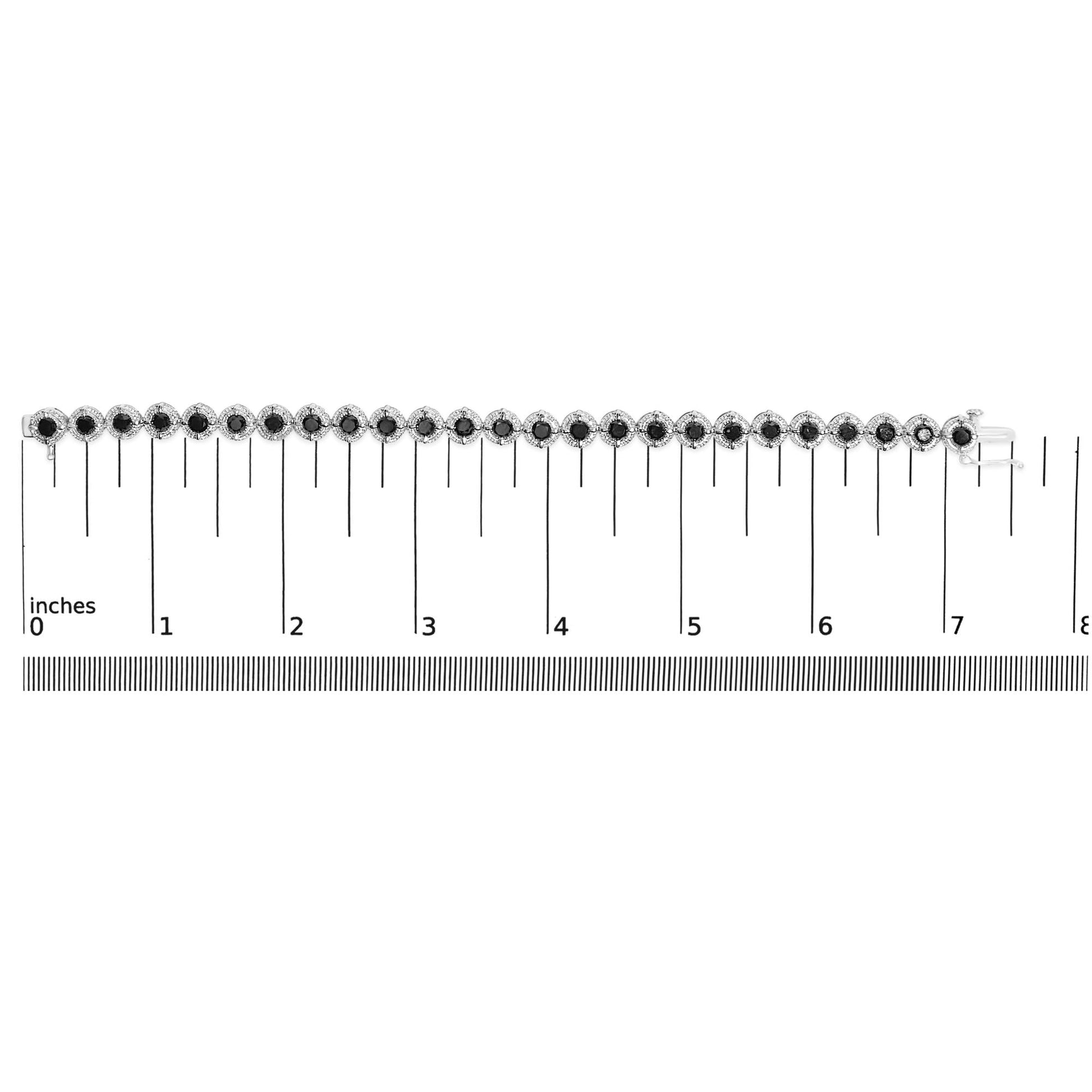 .925 Sterling Silver 5.0 Cttw Black Diamond Milgrain Link Tennis Bracelet - 7" Inches