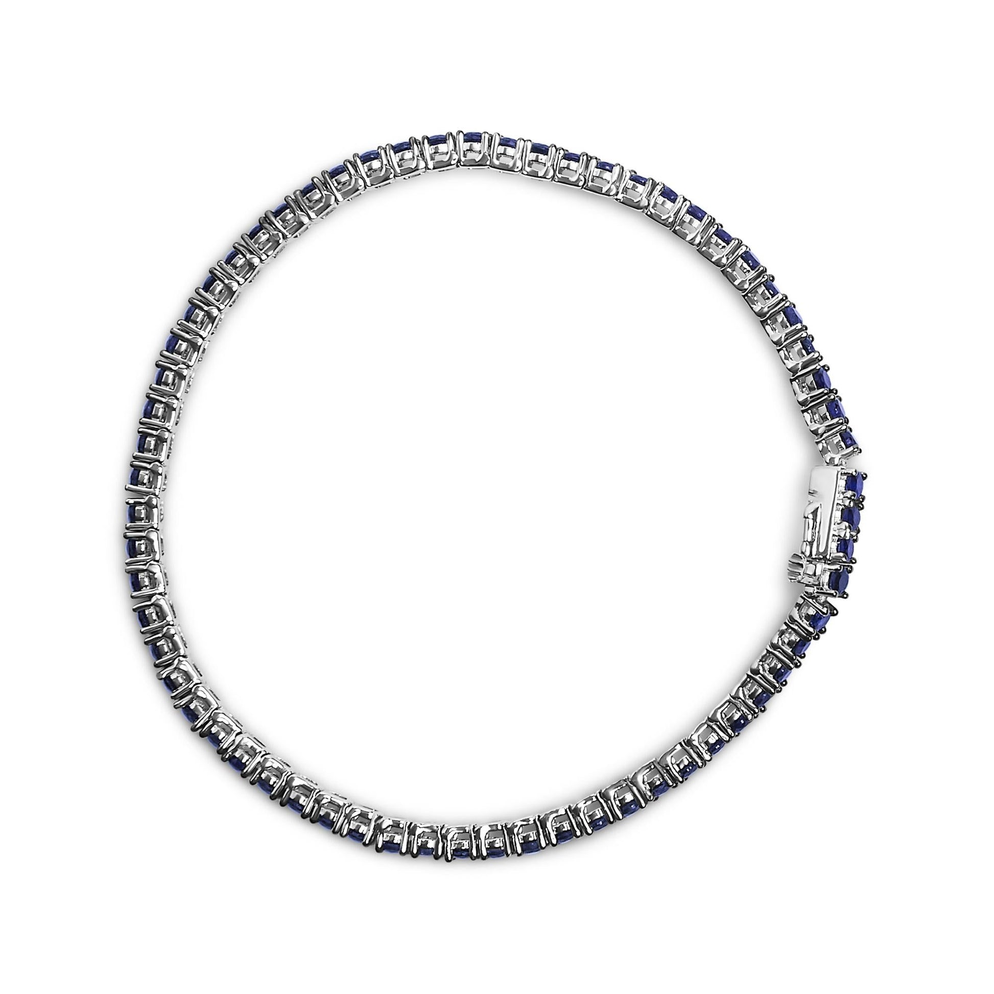 .925 Sterling Silver 5 3/4 Cttw Round Created Blue Sapphire Tennis Bracelet - 7.25" Inches