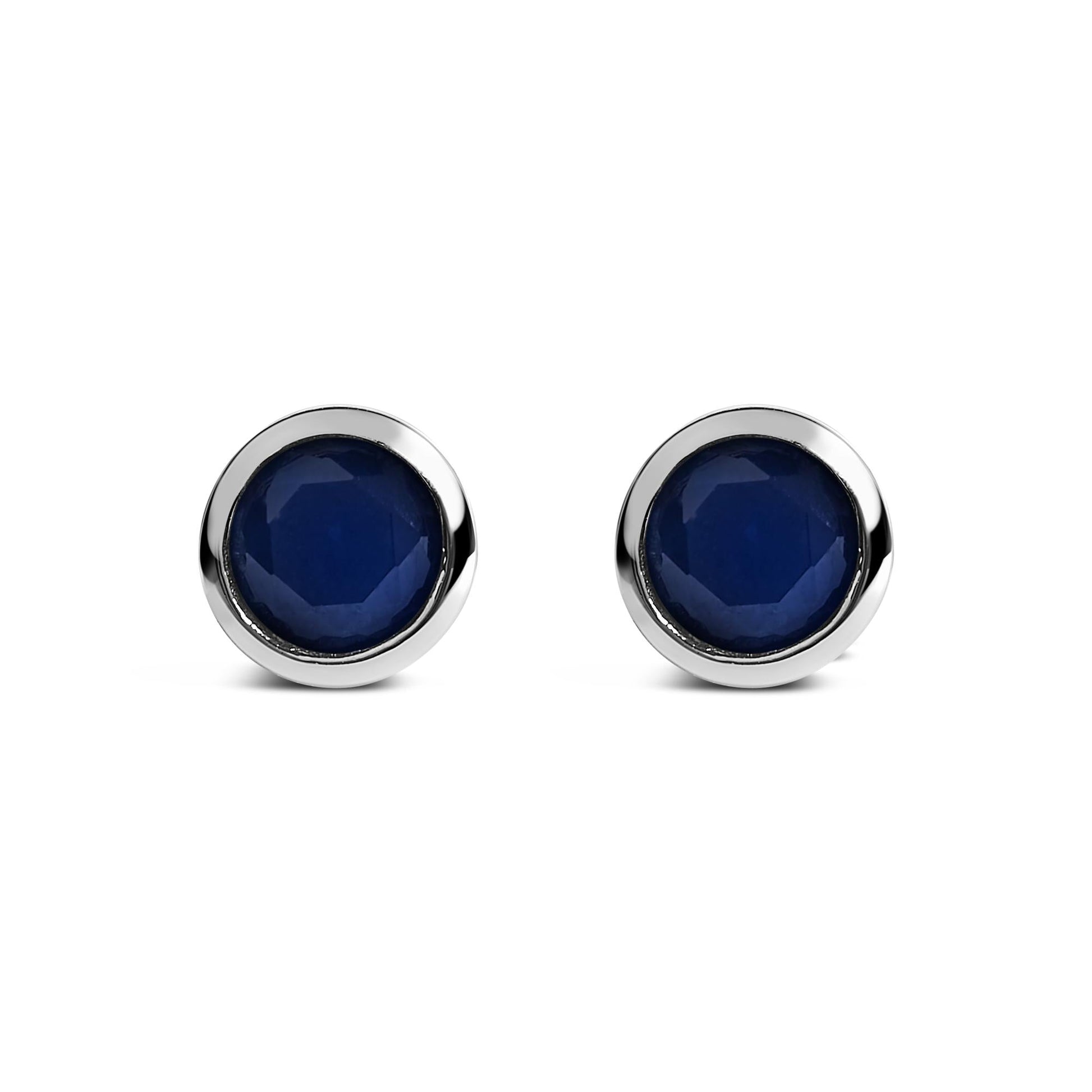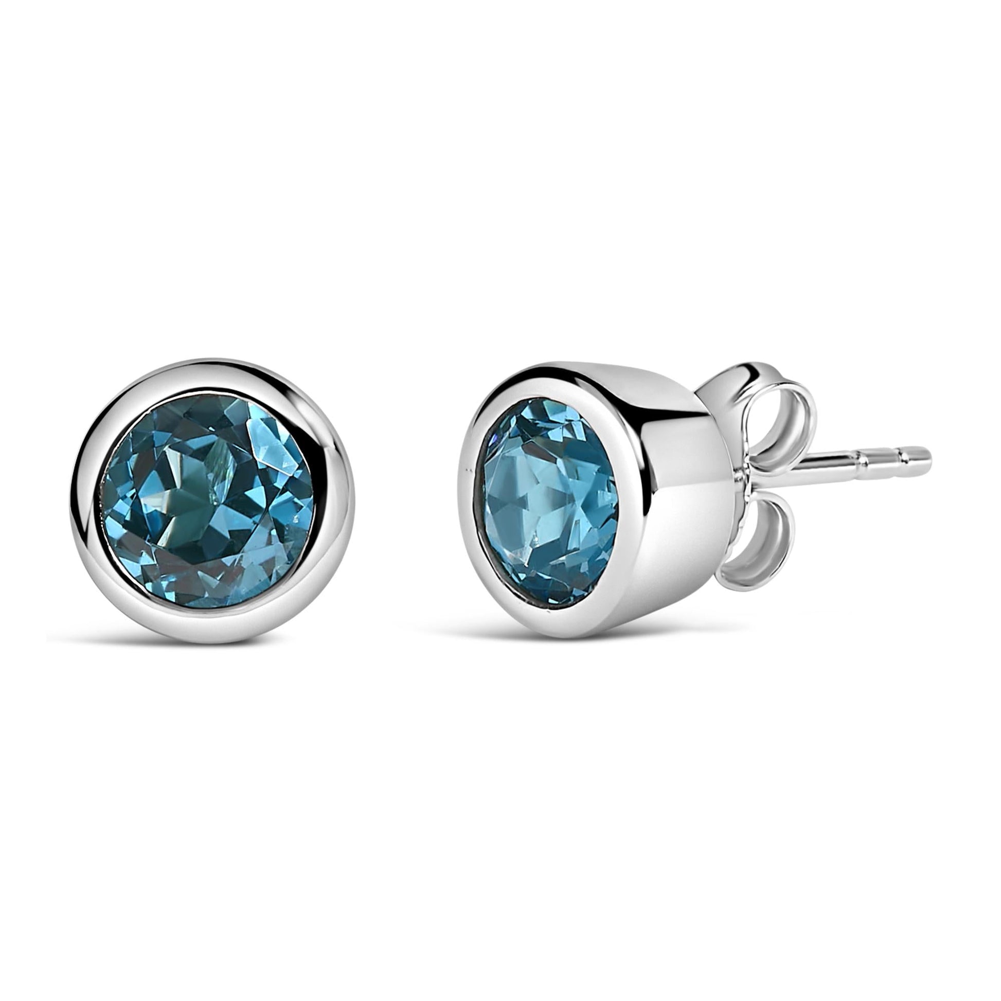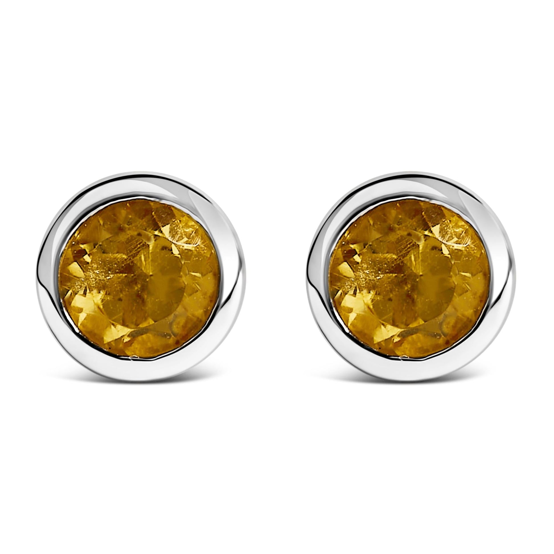 .925 Sterling Silver 6MM Bezel Set Created Gemstone Solitaire Stud Earrings