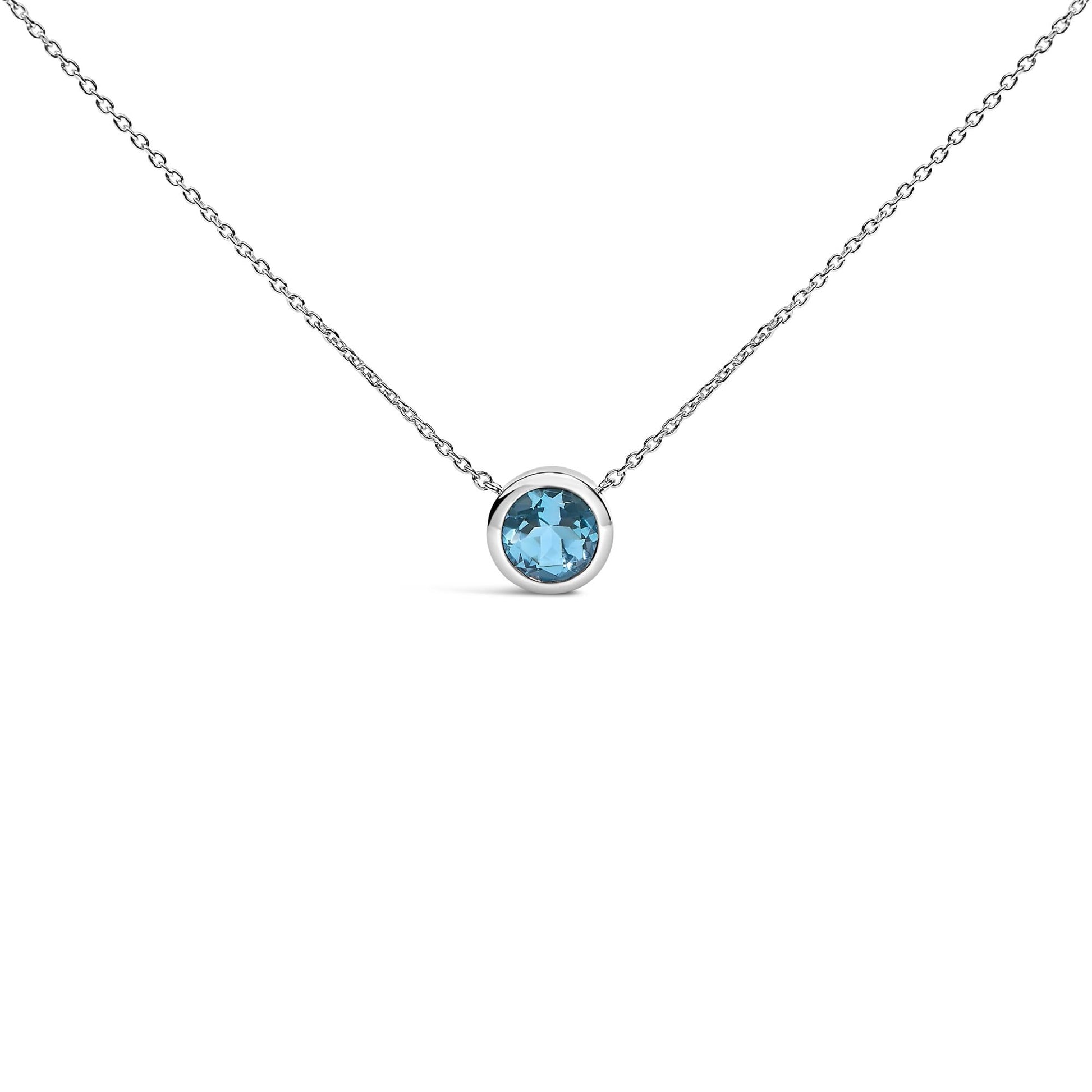 .925 Sterling Silver 7MM Bezel Set Created Gemstone Pendant Necklace - 18" Inches