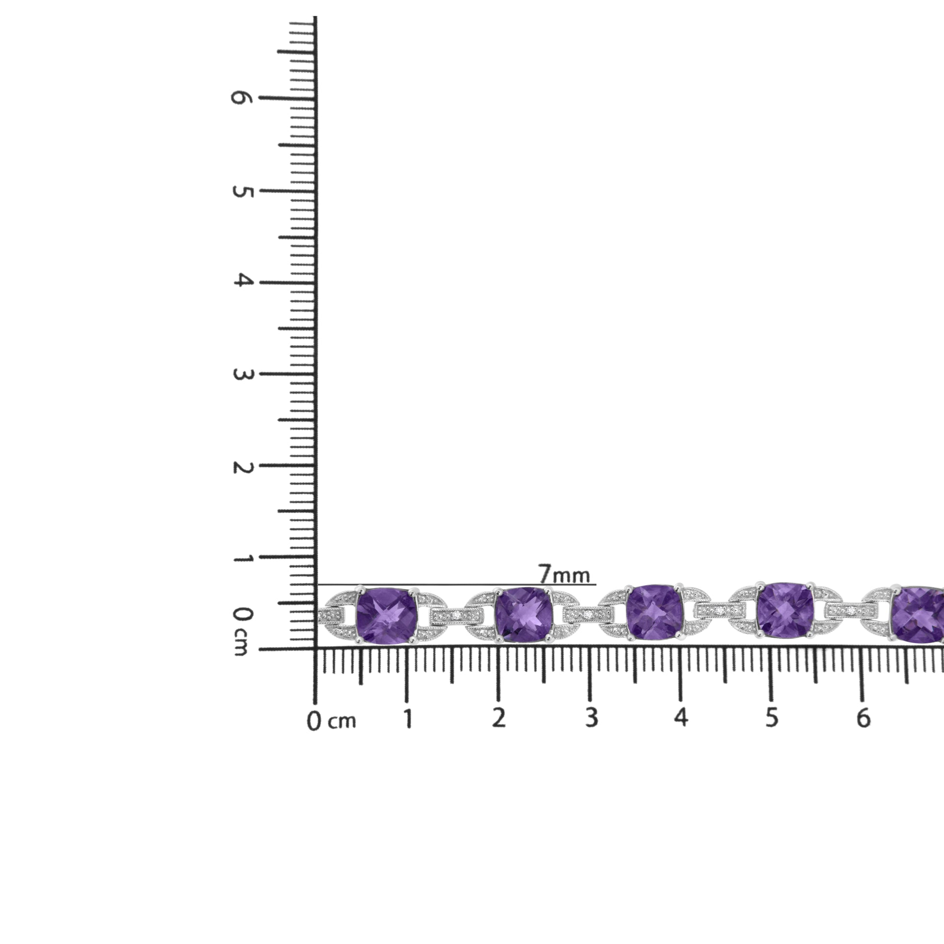.925 Sterling Silver 7mm Cushion Cut Amethyst Gemstone and Diamond Tennis Link Bracelet (I-J Color, I1-I2 Clarity) - Size 7"