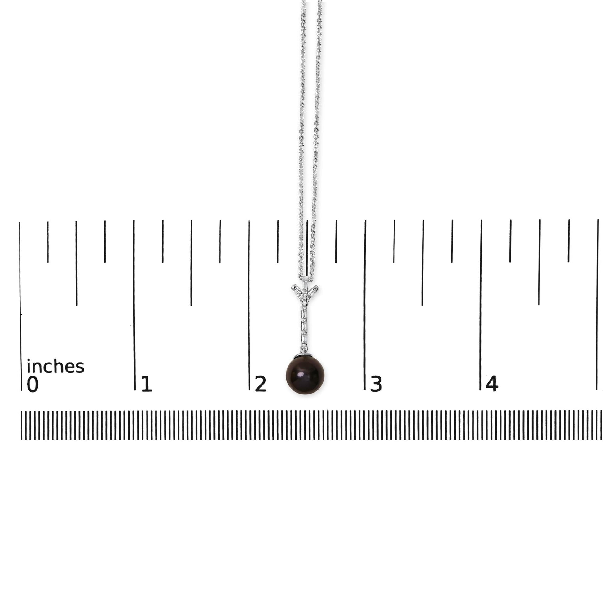 Evoke the mystery and elegance of the ocean depths with this exquisite necklace, featuring a lustrous Tahitian cultured black pearl cradled in shimmering .925 sterling silver. This enchanting piece, suspending from a delicate 18-inch cable chain secured with a lobster claw clasp, unites the enigmatic allure of an 8mm dark pearl with the celestial sparkle of lab-created white sapphires. The sapphires, cut in sophisticated baguette shapes and set in a sleek channel, illuminate the pearl's organic beauty, creating a striking contrast that dances with light. Handcrafted with lab-created stones, thus ensuring clarity and color of impeccable standards, this pendant necklace promises to bring a touch of timeless elegance and a whisper of romantic seas to any ensemble.