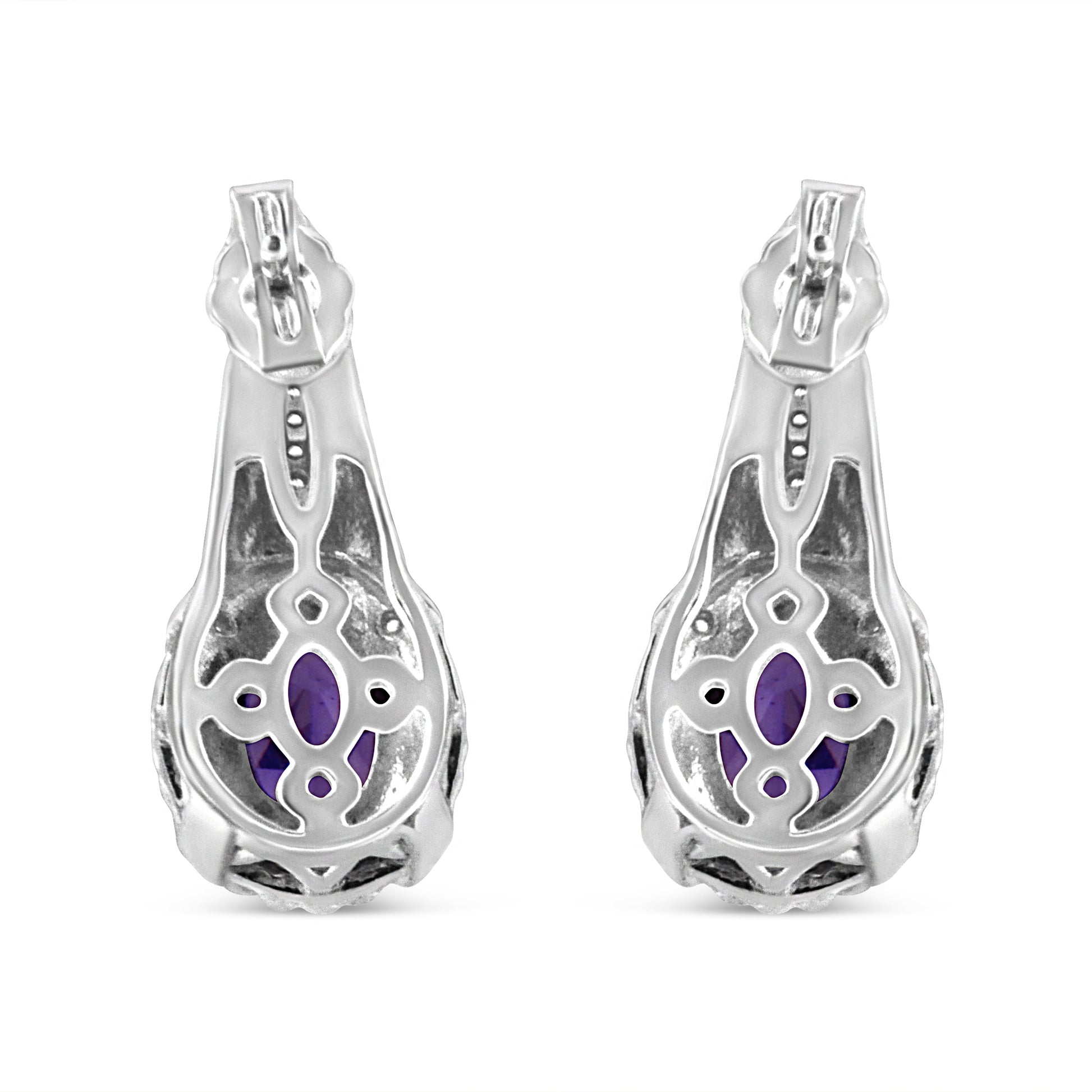 .925 Sterling Silver 8x6 MM Natural Oval Purple Amethyst Gemstone and Diamond Accent Art Deco Style Drop and Dangle Earrings (I-J Color, I1-I2 Clarity)
