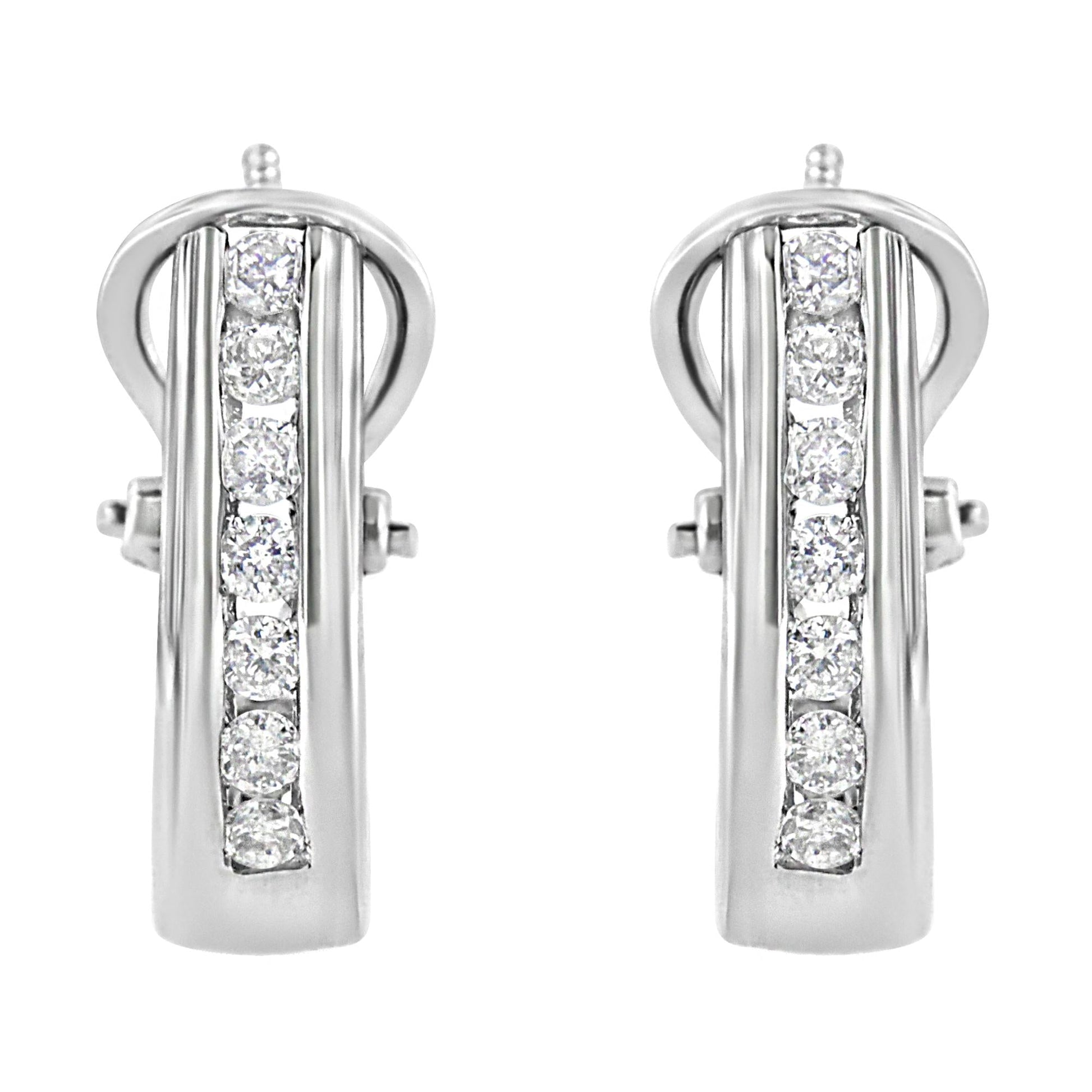 .925 Sterling Silver Channel Set 1/2 Cttw Lab Grown Round Diamond Omega Back Huggy Hoop Earrings (F-G Color, SI1-SI2 Clarity)
