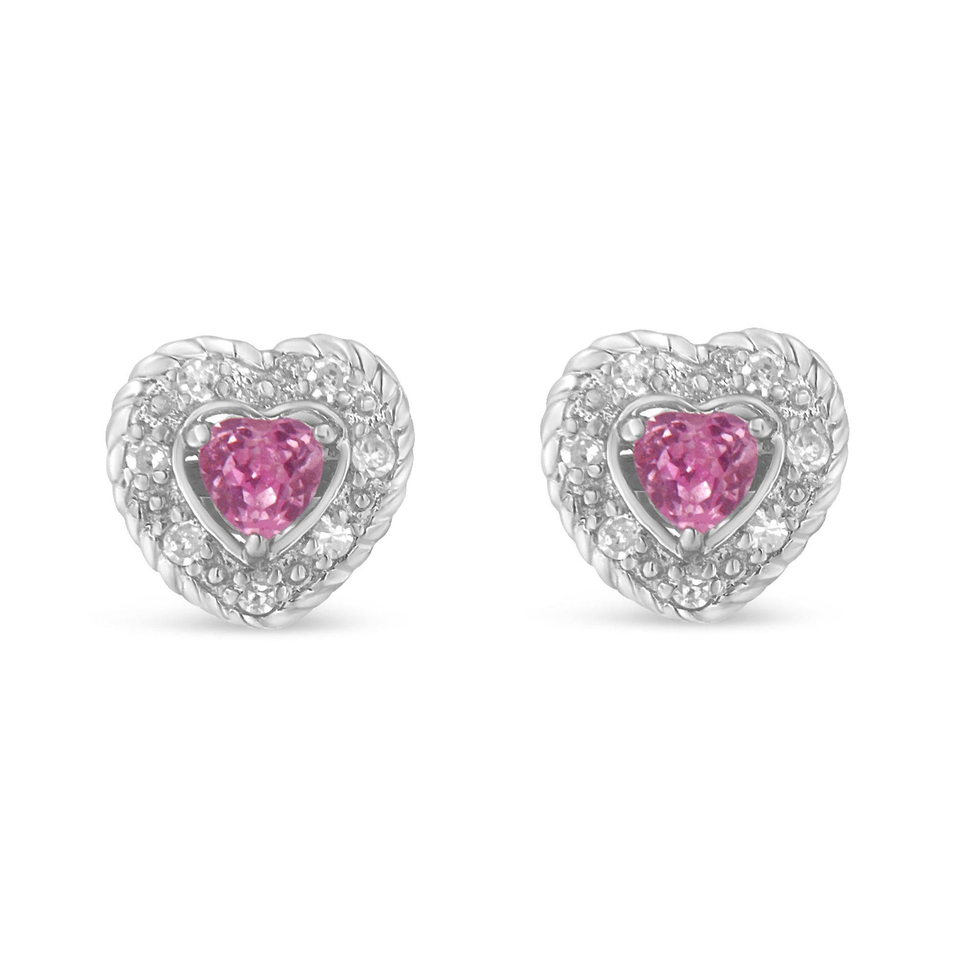 .925 Sterling Silver, Created Pink Sapphire, & Diamond-Accented 5/8" Heart-Shaped Rope Stud Earrings (I-J Color, I2-I3 Clarity)