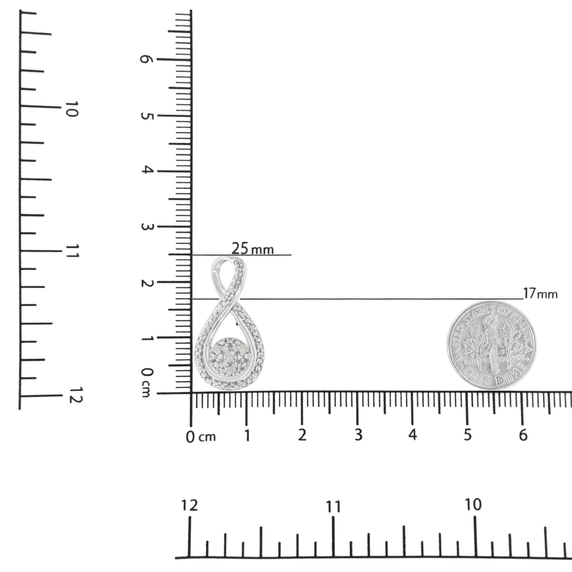 Celebrate someone you love with this stunning diamond infinity pendant necklace. This diamond necklace features an infinity swirl suspending a silver cluster studded with round, rose-cut, promo quality diamonds, which are milky and cloudy in nature. The stunning pendant comes with a matching box chain necklace with a spring ring clasp. The contemporary yet classic 18" box chain complements any neckline beautifully. This authentic design is crafted of real 92.5% sterling silver that has been electro-coated with genuine rhodium (a platinum-family metal), ensuring it will keep a tarnish-free shine for years to come. Both pretty and personal, this romantic diamond pendant necklace is sure to radiate romance,. This infinity design features 4 sparkling diamonds. This sweet necklace makes a perfect Valentine's Day gift, or as a way to remember someone close to your heart. It's a classic and feminine piece she'll want to show off every day.