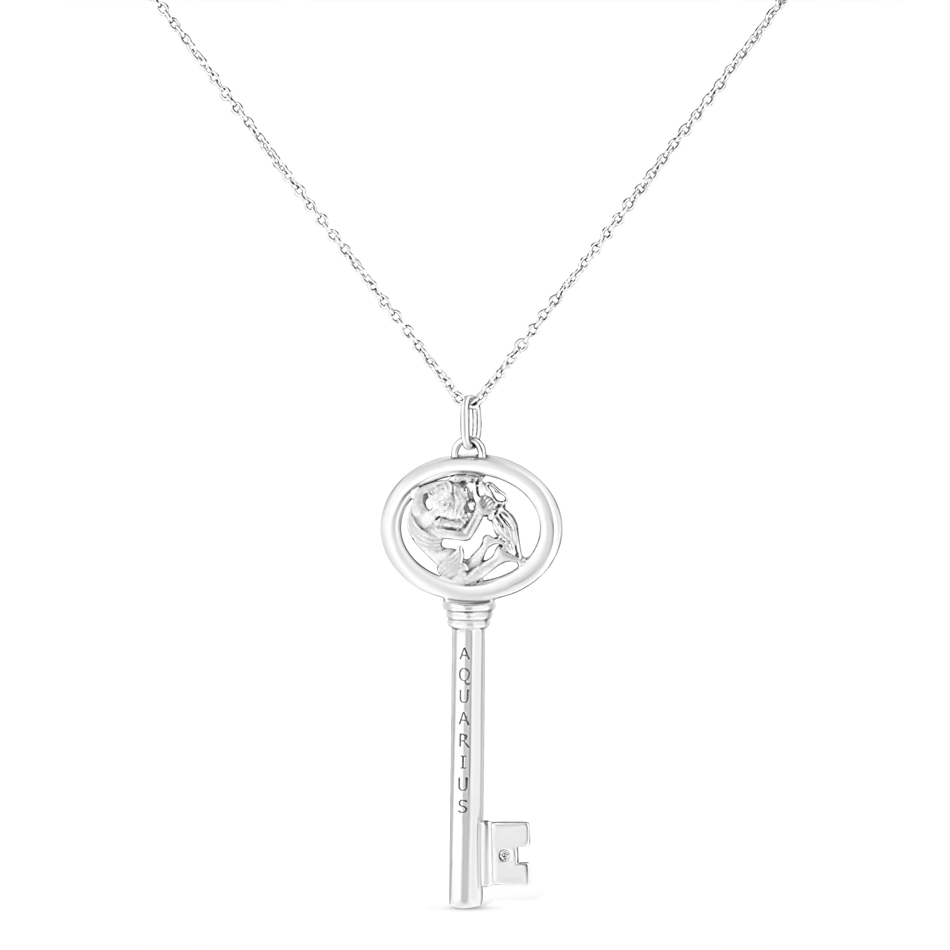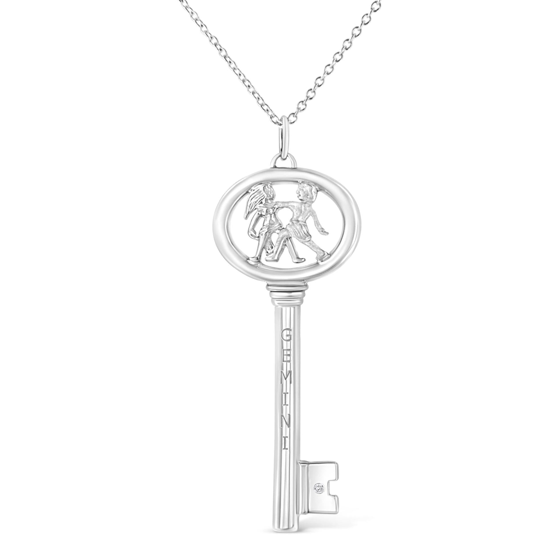 .925 Sterling Silver Diamond Accent Zodiac Key 18" Pendant Necklace (K-L Color, I1-I2 Clarity)