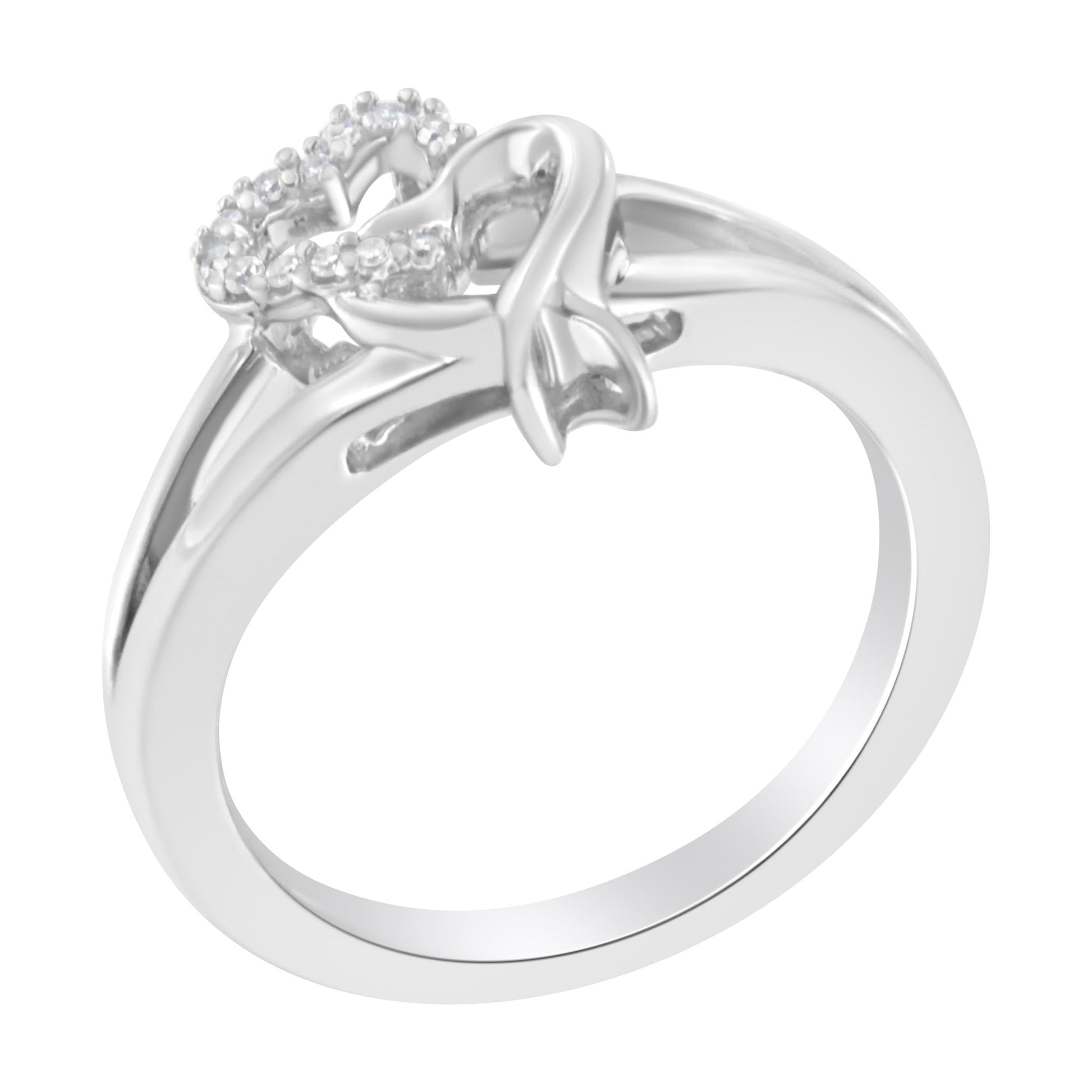 .925 Sterling Silver Diamond Heart Accent Ring (1/20 Cttw, H-I Color, I1-I2 Clarity).50
