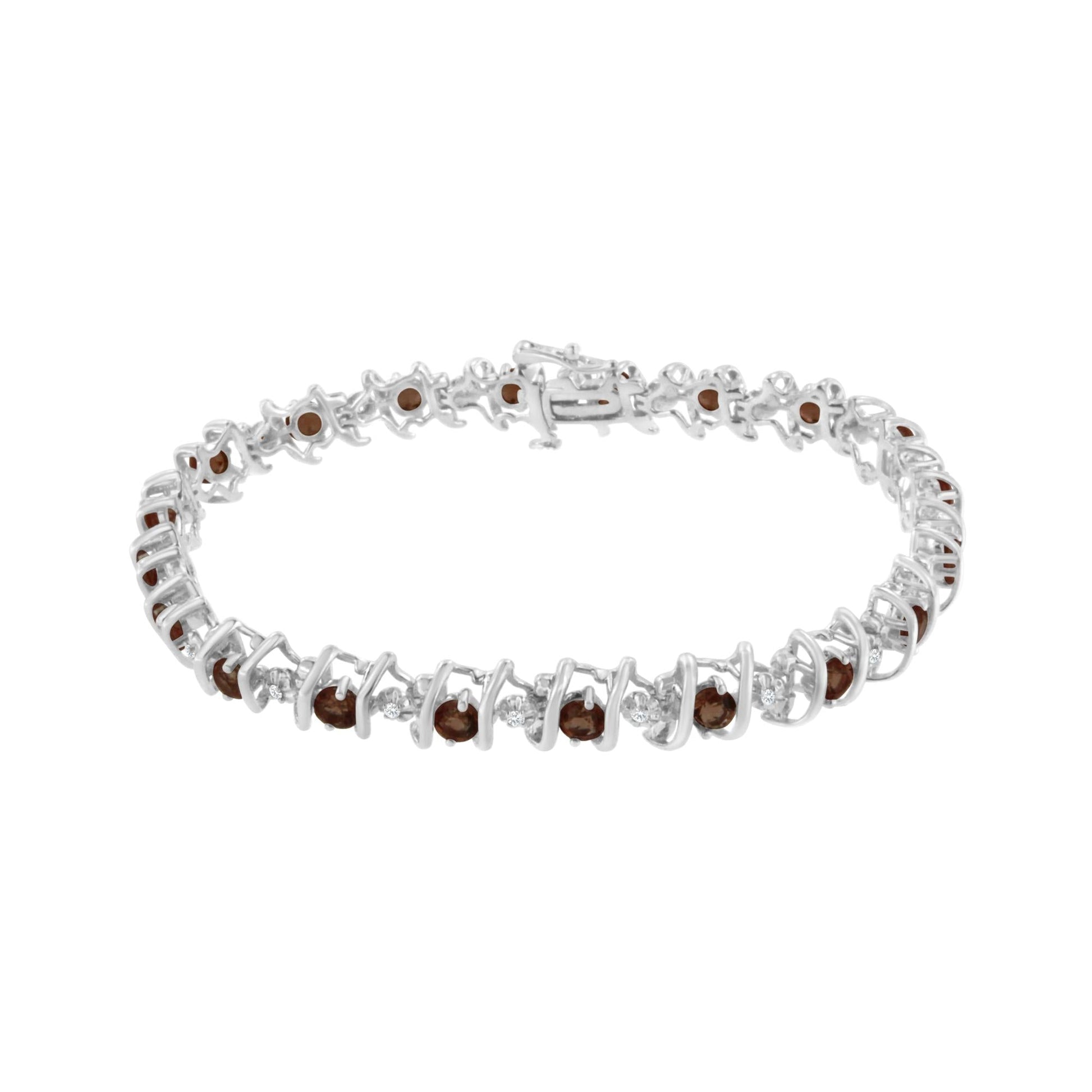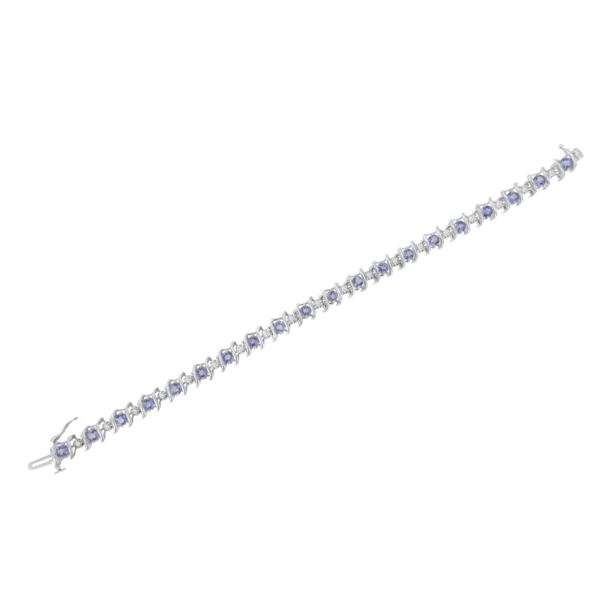 Vivid created birthstones and sparkling white diamonds are set in this S-link tennis bracelet crafted in cool .925 sterling silver. The bracelet features 20 sparkling diamonds set in miracle-plate settings that multiply their sparkle, for a total diamond weight of 0.15 carats. The 20 sustainably lab-grown birthstones alternate with the diamonds in a delicate dimensional and open setting, adding brilliant color to this feminine fashion bracelet. The perfect gift to celebrate a birthday, simply choose the birthstone that corresponds with your loved one's birth month.