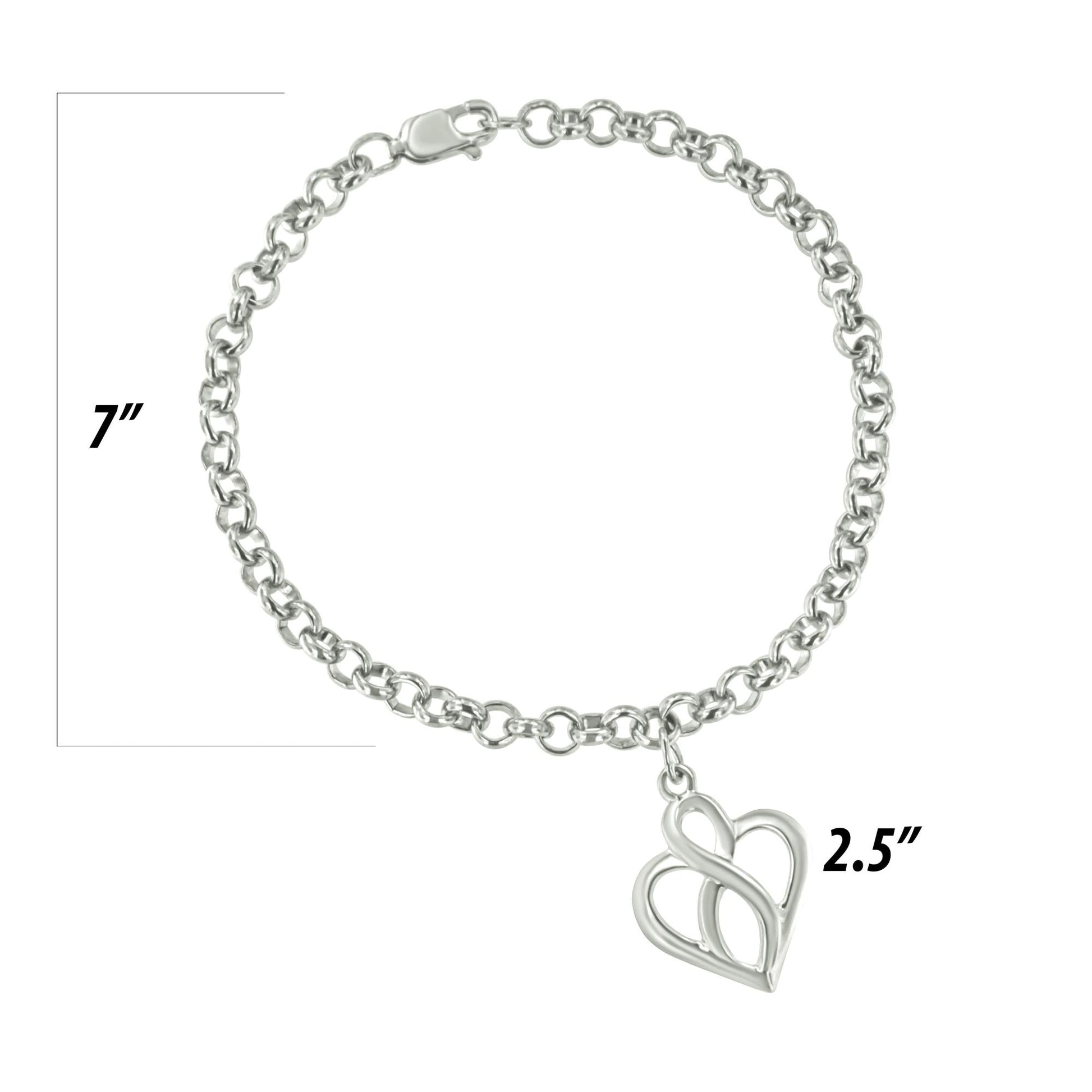 .925 Sterling Silver Open Heart with Center Vertical Infinity Chain Charm Bracelet - Size 7"