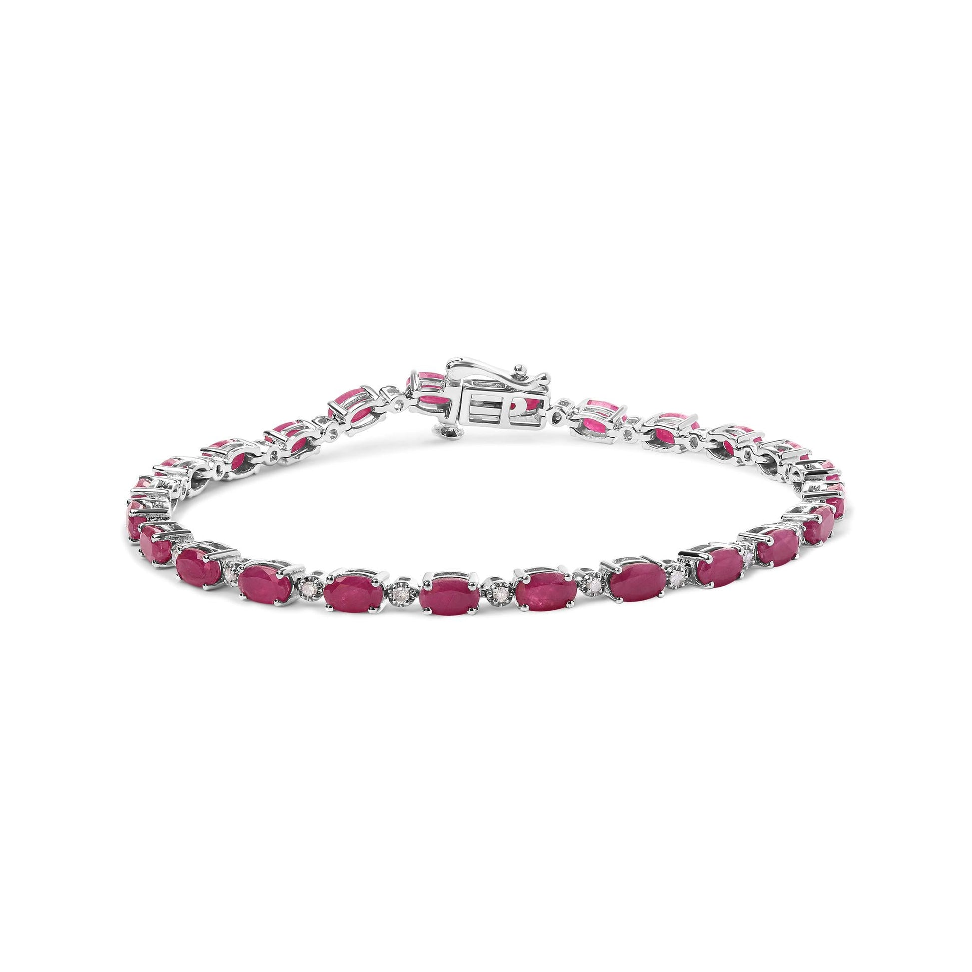 .925 Sterling Silver Oval Ruby and 1/4 Cttw Diamond Link Bracelet - Size 7.25" - (I-J Color, I2-I3 Clarity)