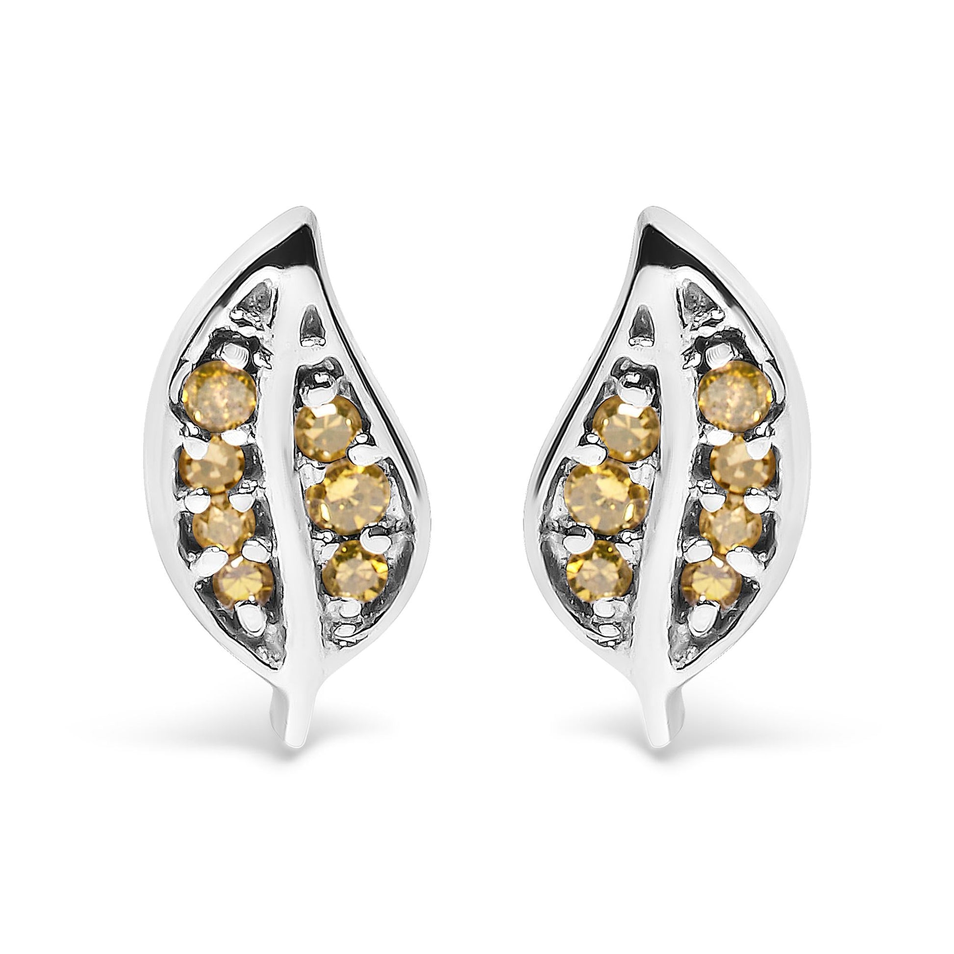 .925 Sterling Silver Yellow Diamond Accent Leaf Stud Earrings (Yellow Color, SI1-SI2 Clarity)