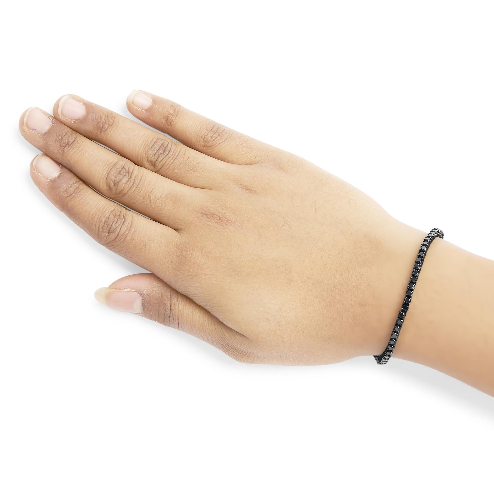 Step into the realm of unparalleled sophistication with our mesmerizing Black Diamond Tennis Bracelet. Crafted from exquisite black rhodium-plated .925 sterling silver, this bracelet exudes an aura of mystique and allure. Adorned with 121 natural round black diamonds totaling 5.0 carats, each stone shimmers with intensity and depth, beautifully set in a secure 4-prong setting. The enigmatic hue of the diamonds, coupled with their I2-I3 clarity, adds an element of intrigue and elegance to any ensemble. Perfect for both men and women, this timeless piece is destined to captivate hearts and command attention with its understated yet undeniable allure. Elevate your style and embrace the allure of darkness with this exquisite black diamond tennis bracelet.