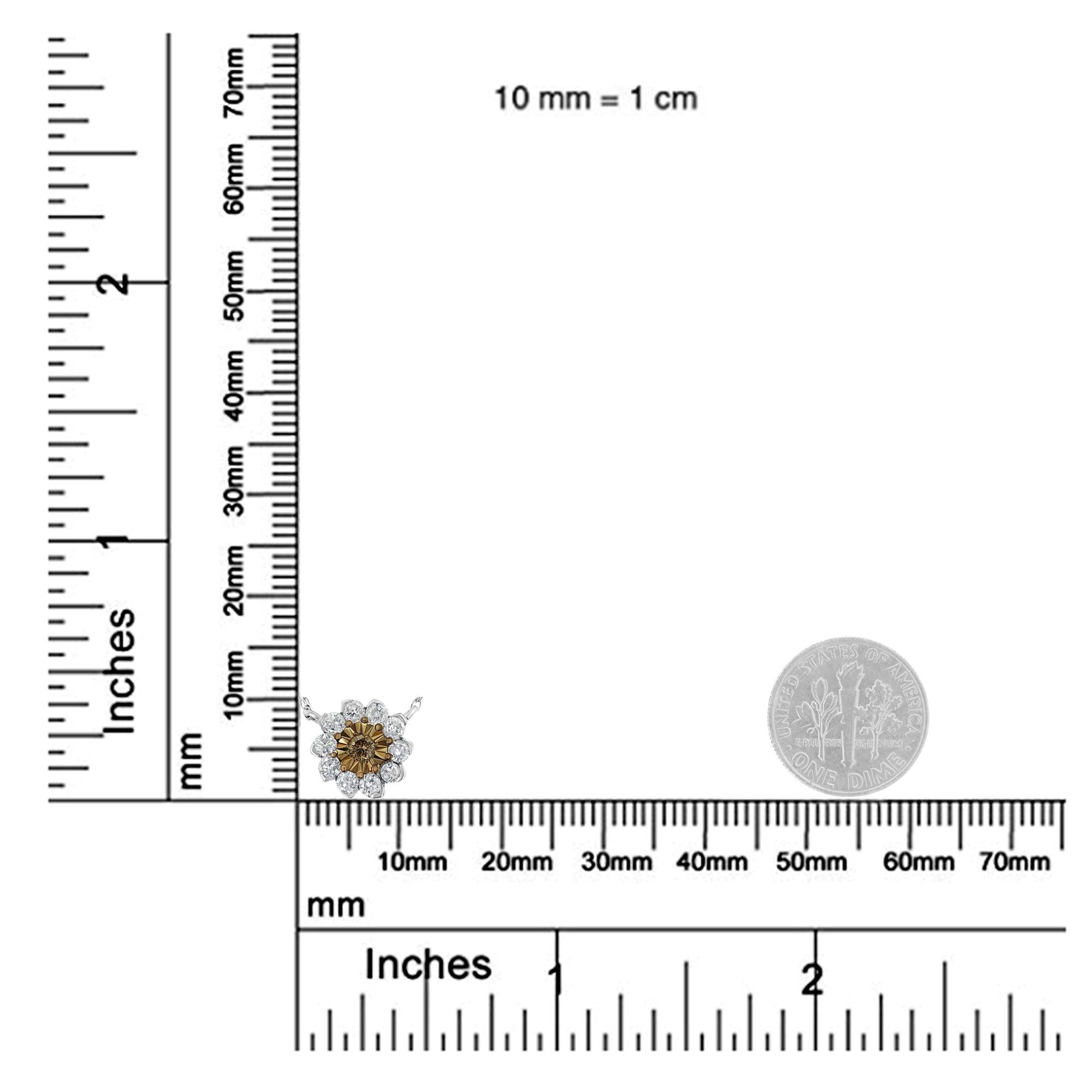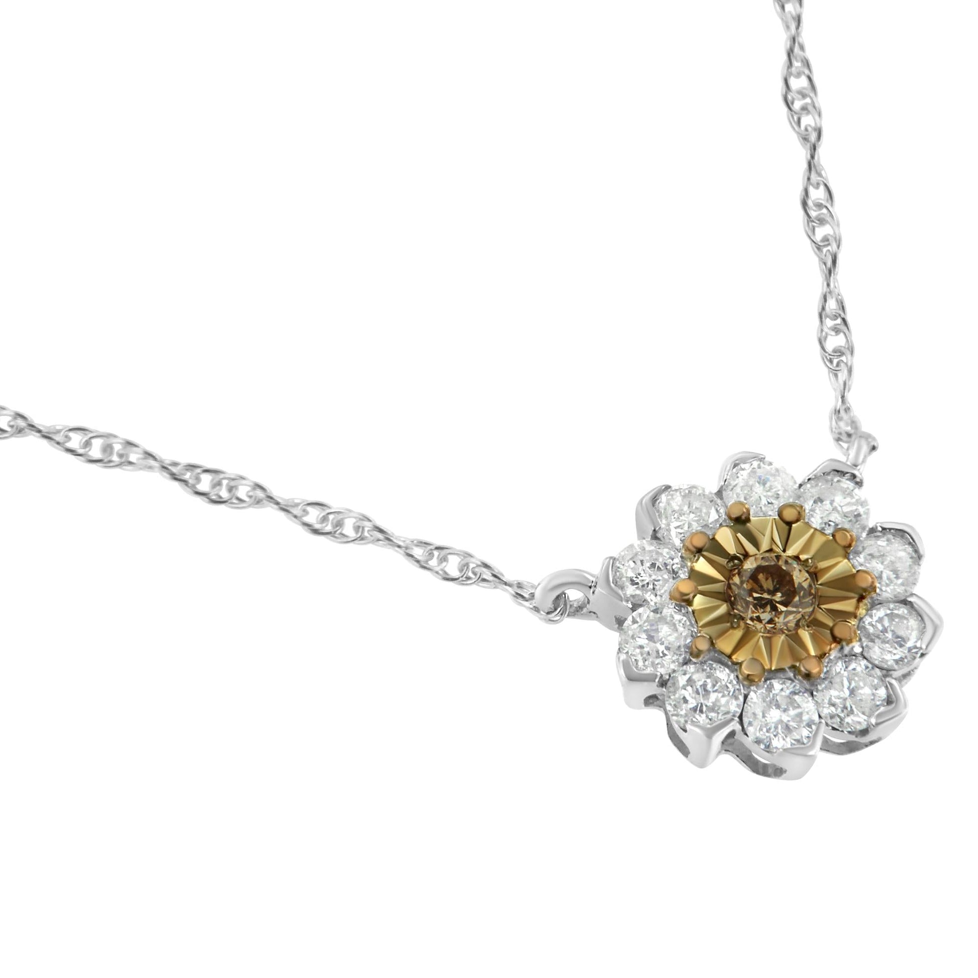 Brown Rhodium over .925 Sterling Silver 1/2 Cttw Diamond Miracle Plate Flower Cluster 18" Pendant Necklace (Champagne and I-J Color, I1-I2 Clarity)
