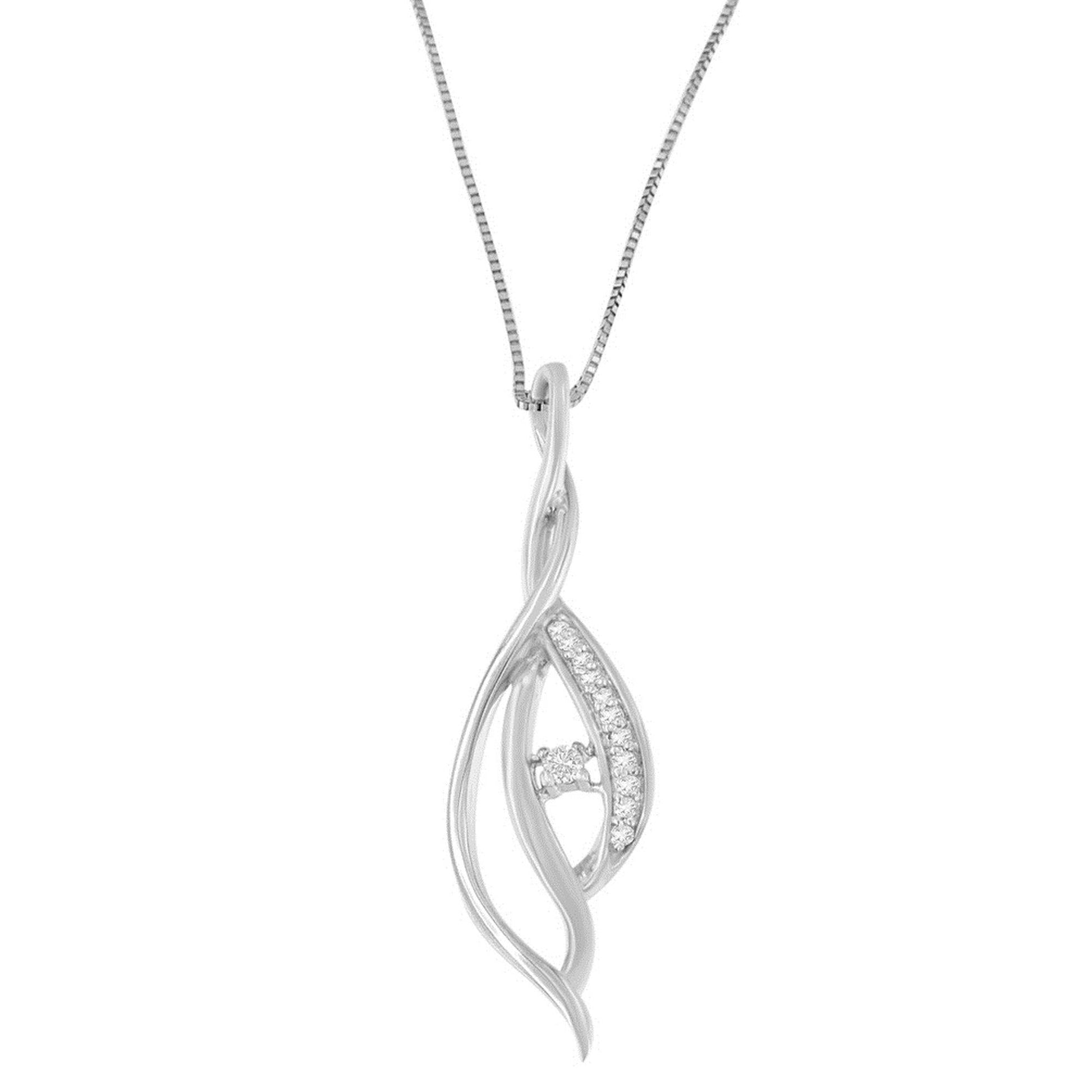 Espira 10K White Gold Round Diamond Accented Open Cascade Twist 18" Pendant Necklace (1/10 Cttw, J-K Color, I1-I2 Clarity)