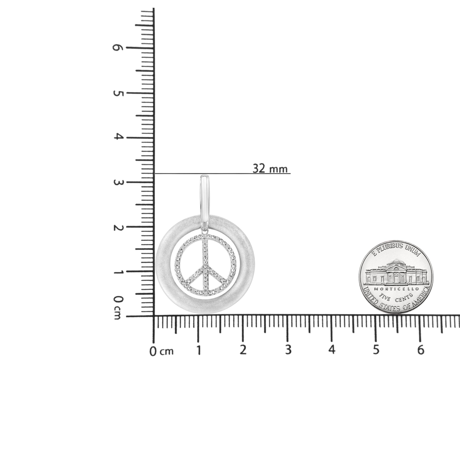 Matte Finish .925 Sterling Silver Diamond Accent Dancing Peace Sign 18" Pendant Necklace (I-J Color, I1-I2 Clarity)