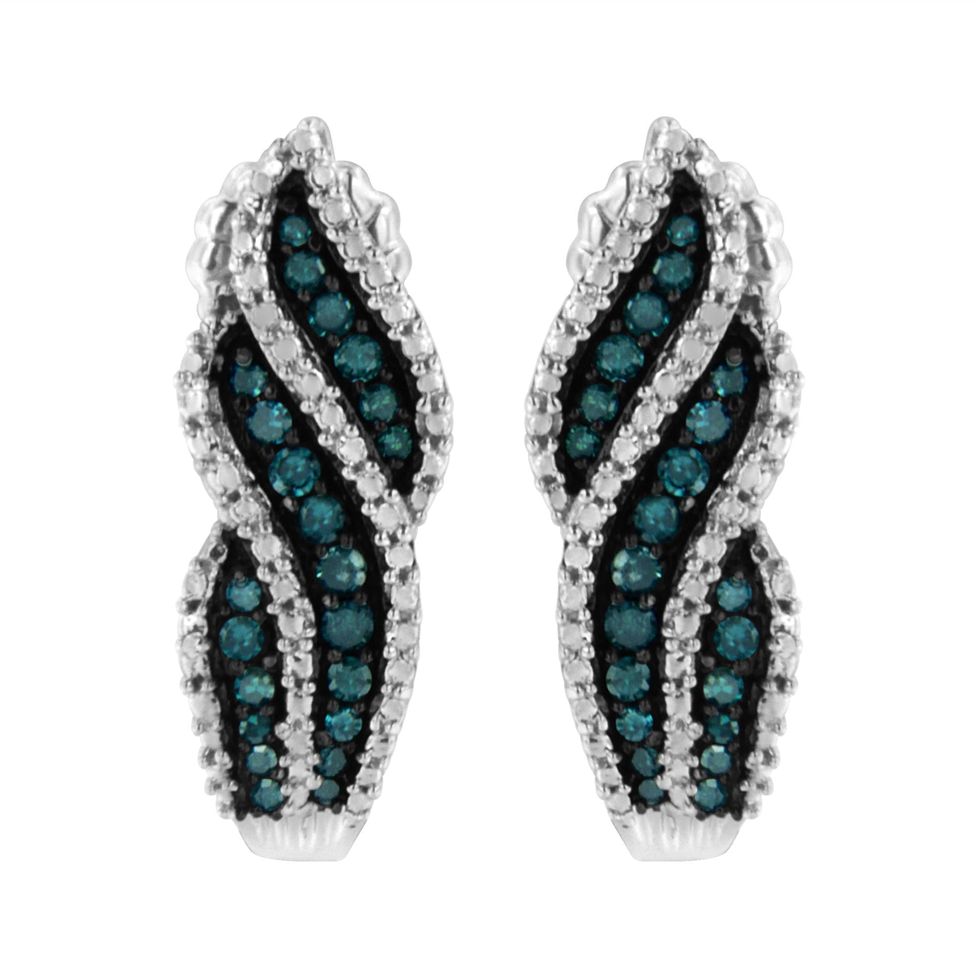 Dazzle all with these stunningly designed sterling silver diamond earrings. This gorgeous pair of dangling stud earrings is embellished with .50 carats of round-cut, treated blue diamonds in a prong setting. Each earring comes with a push back mechanism for a secure fit. Gift this unique pair of earrings to your loved ones this holiday season.