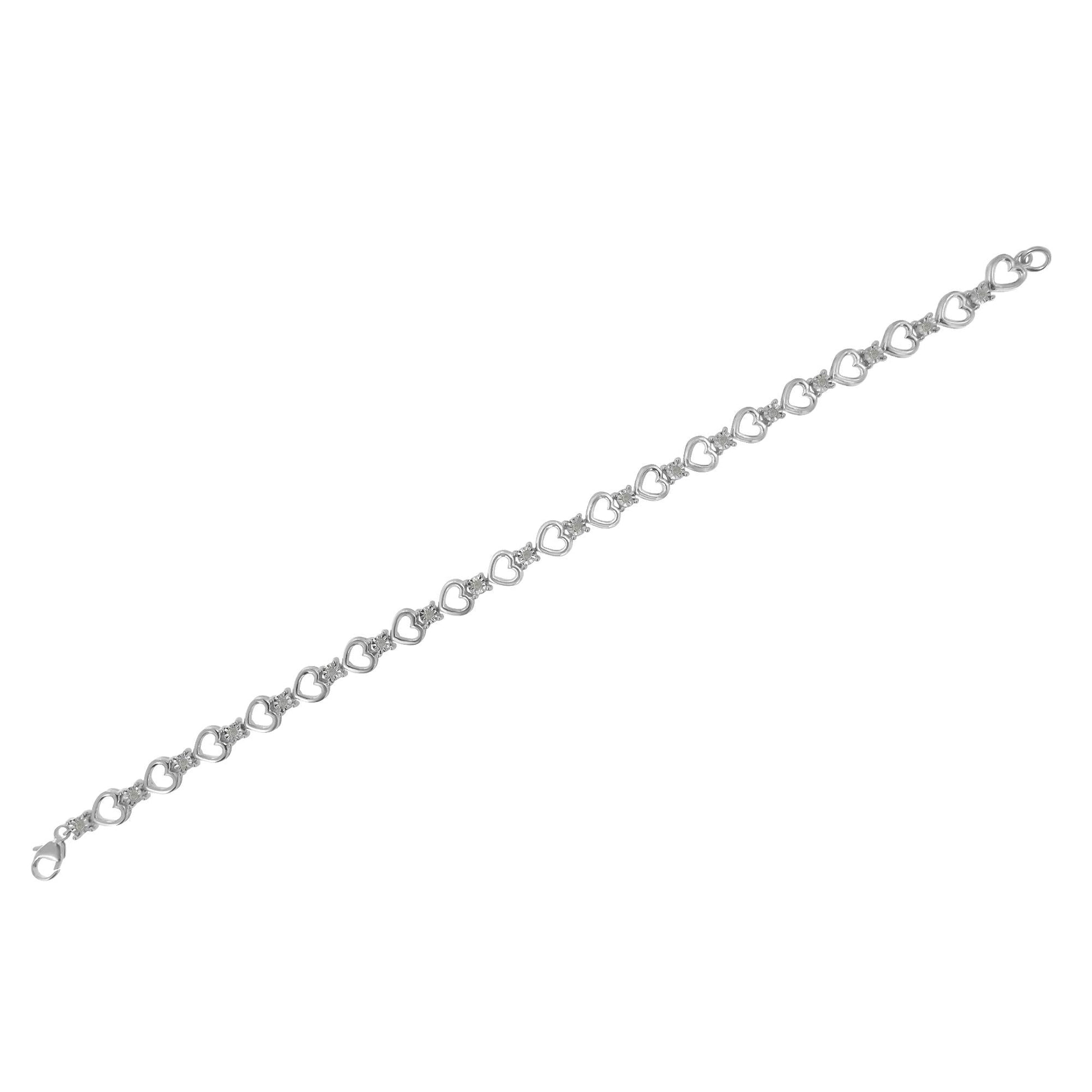 Sterling Silver Diamond Heart Link Bracelet (1/4 cttw, I-J Color, I3 Clarity)