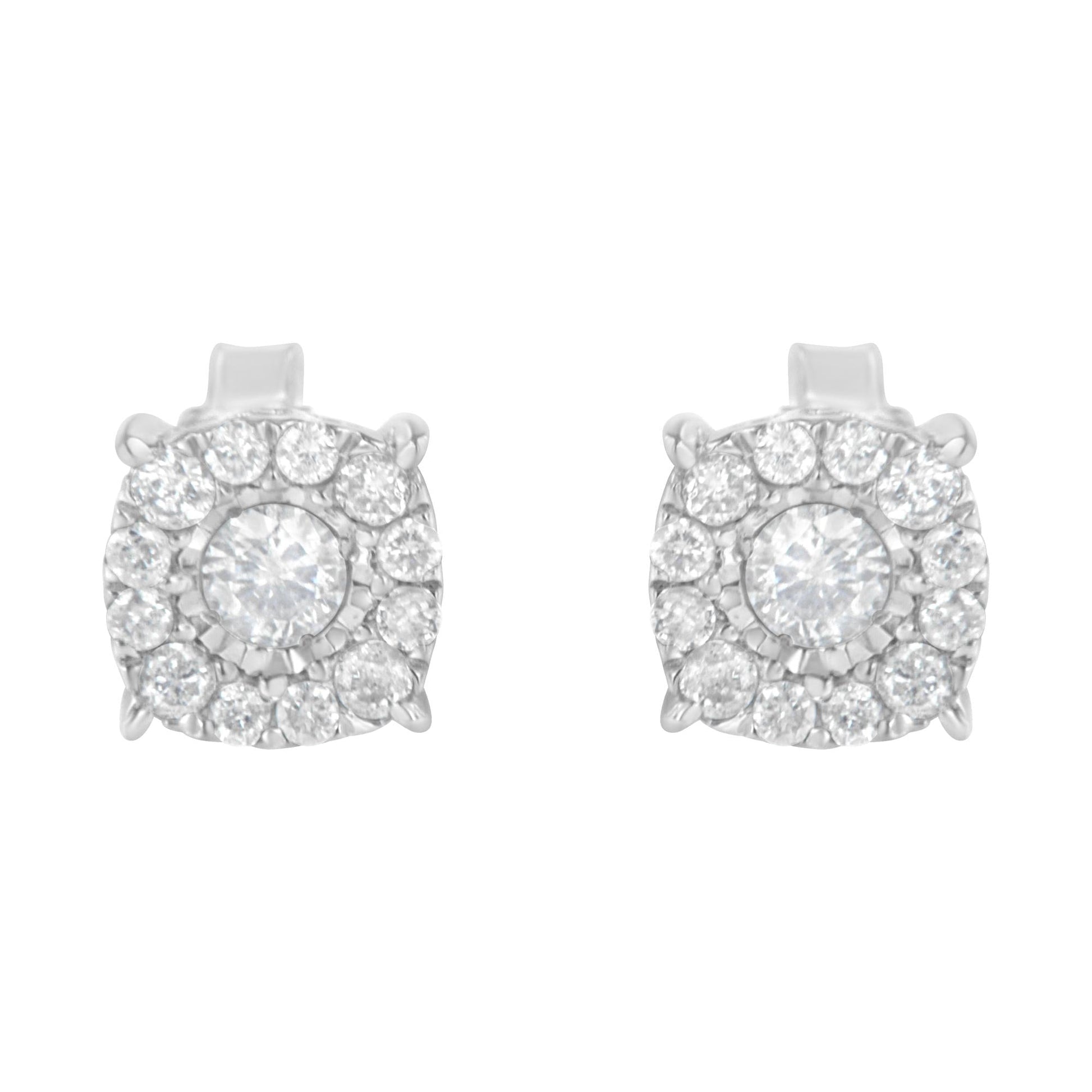 Sterling Silver Diamond Square Stud Earring (1/2 cttw, I-J Color, I2-I3 Clarity)