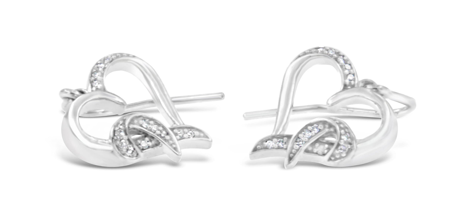 Representing the symbol of love, these heart shaped earrings are composed of high-quality sterling silver and buffed high to shine. The stunning jewel is embellished with sparkling round cut diamonds in a pave setting. The authentic earrings make a must-have accessory that every woman should have in her collection.